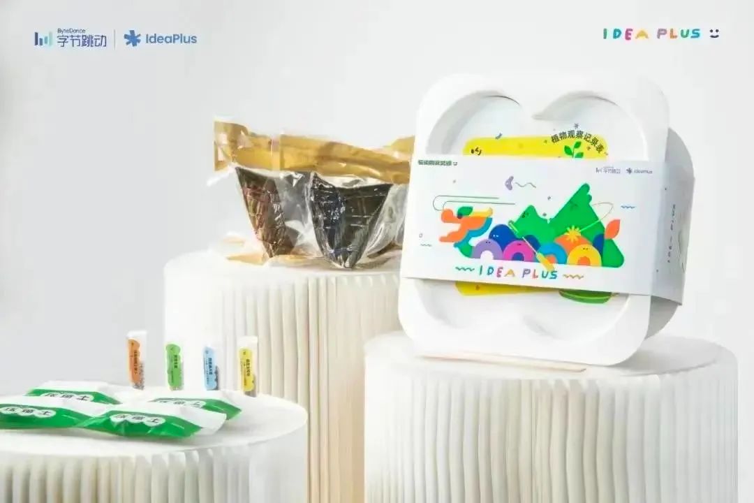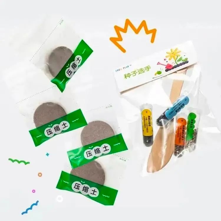 字节的端午礼盒是一个花盆盒,里面不仅有四颗粽子,还有蔬菜鲜花种子、小木铲和压缩土。