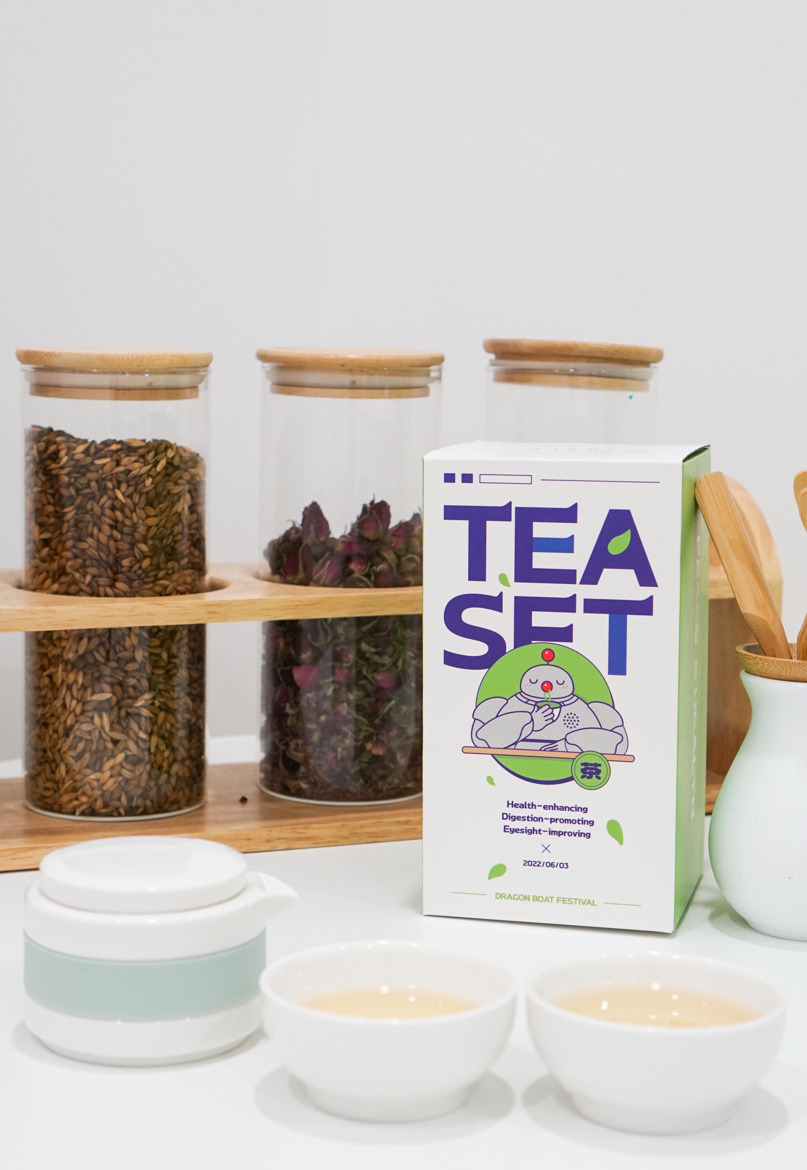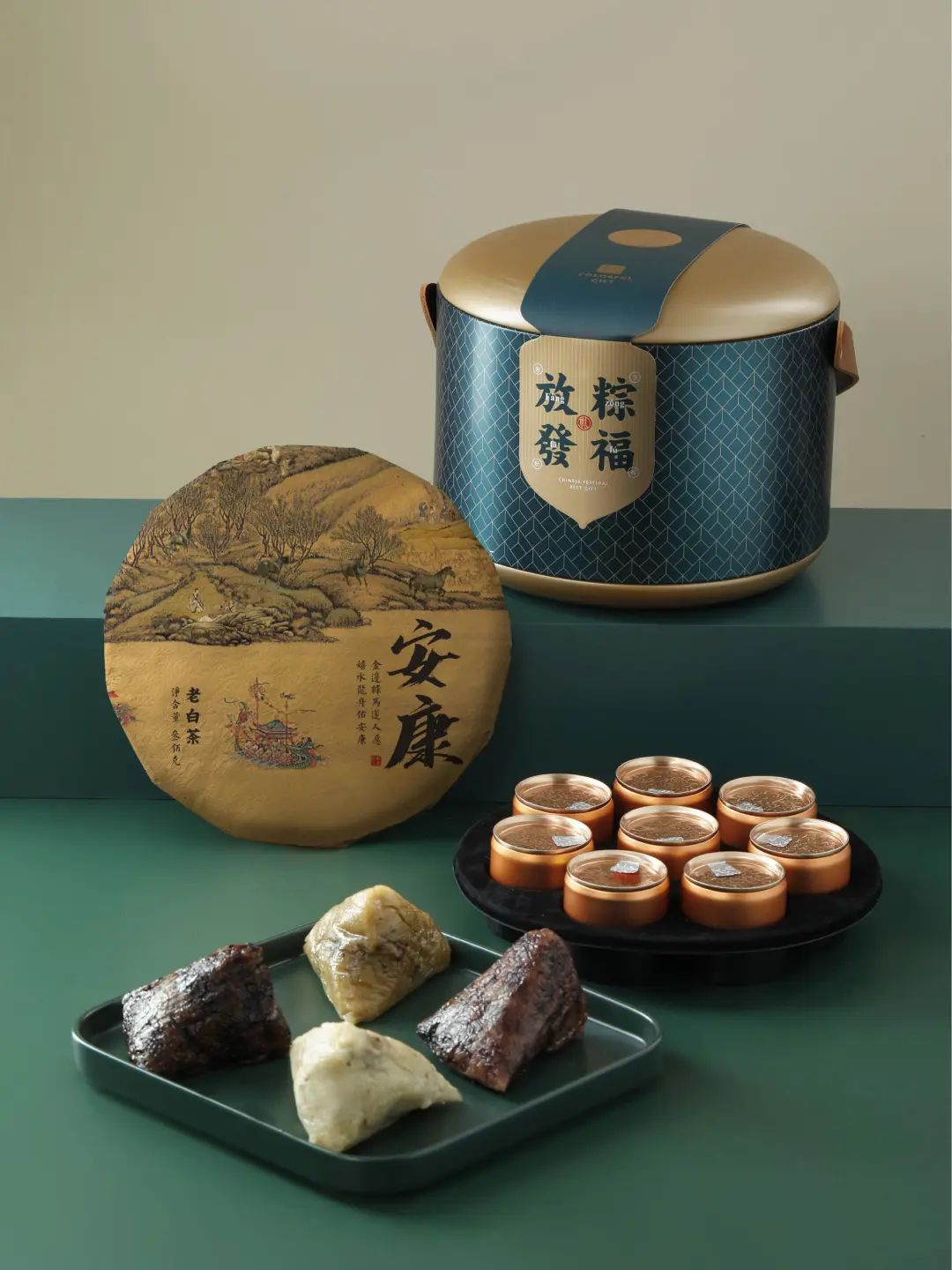 礼盒内还有甜咸搭配的粽子,双人茶具套装。可谓是粽香四溢x一盏清茶=天生一对!