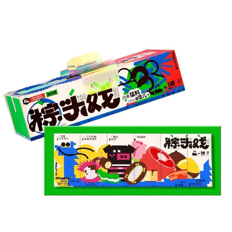 风变端午礼盒将童趣融入礼盒之中,涵盖“趣、味、闻、型、玩”五大主题。