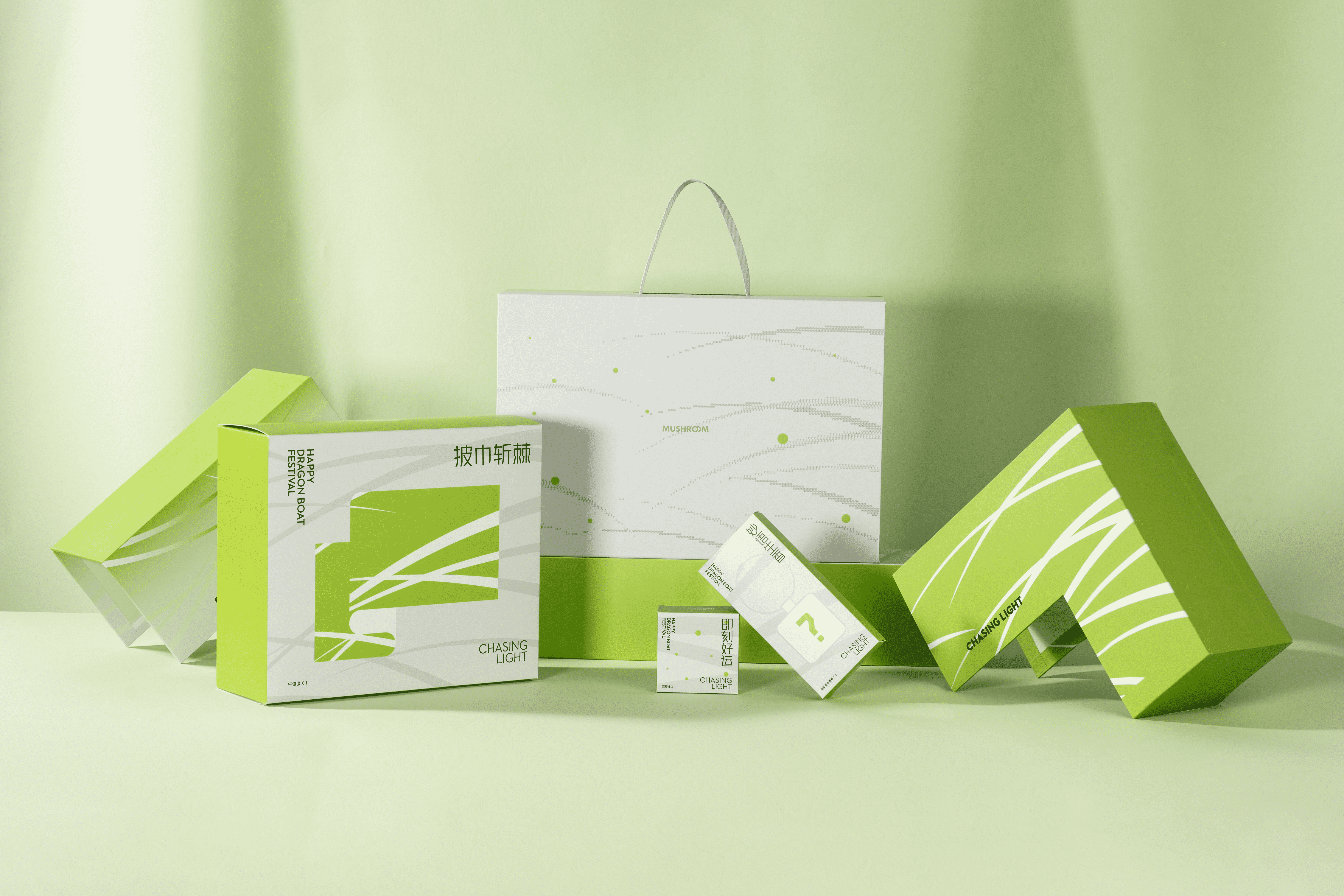 礼盒设计灵感来自仲夏时节丰茂的草丛,清新的绿白搭配,带来清爽的视觉体验。