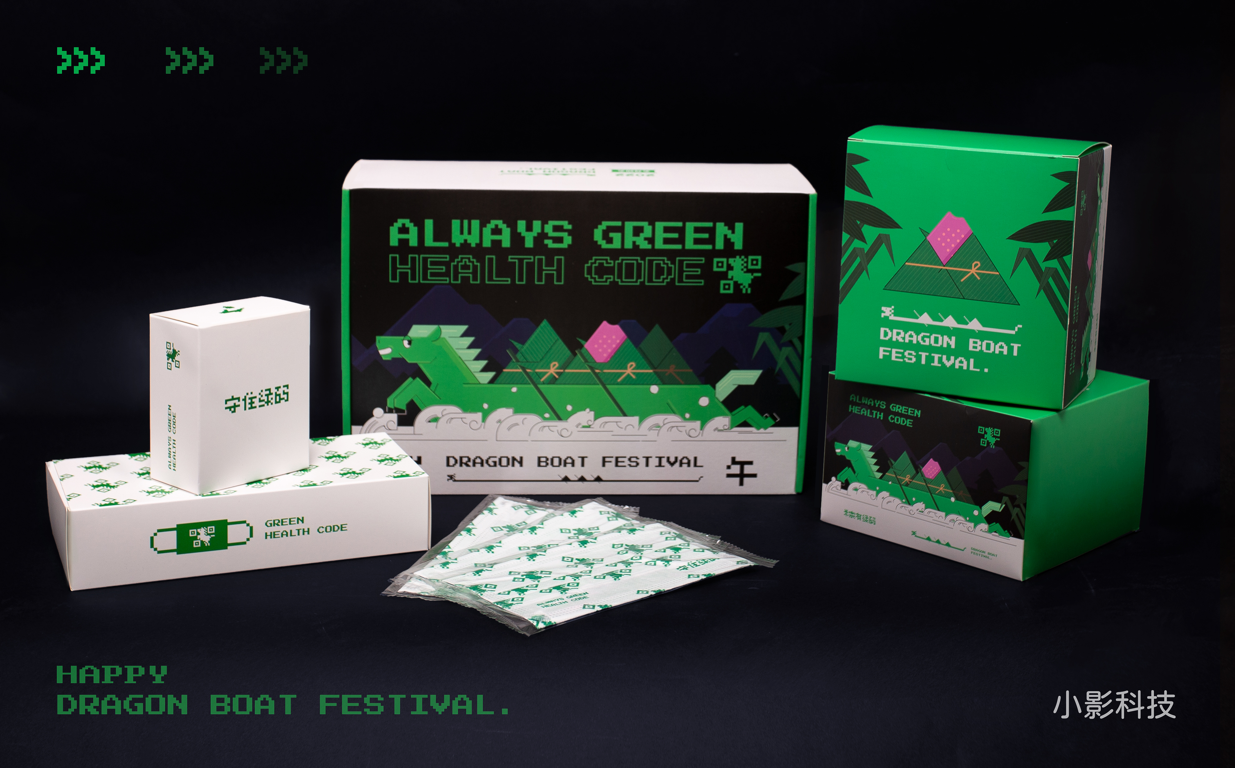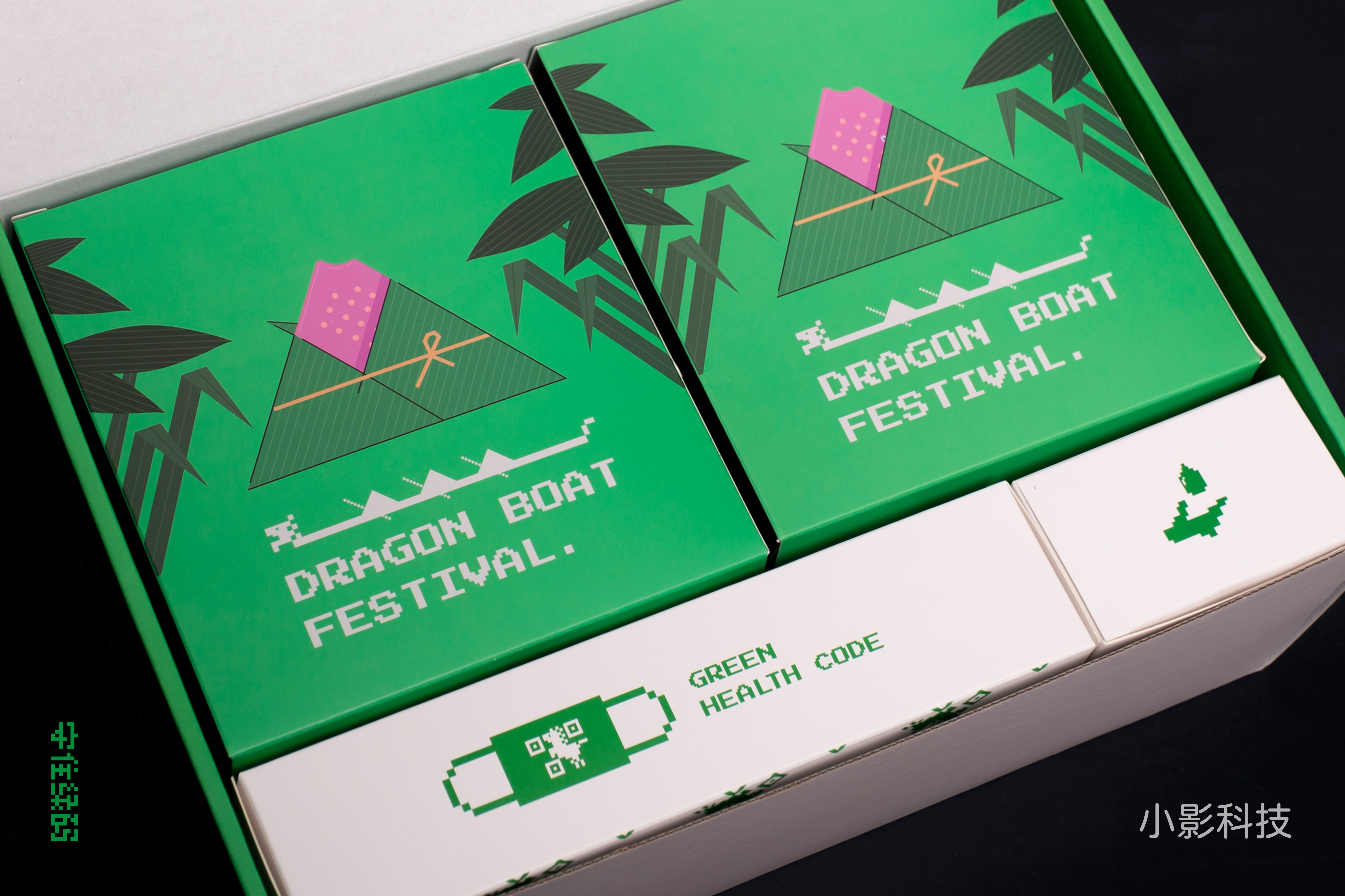小影科技的端午礼盒采用像素风设计,打造“守住绿码”的游戏主题概念。