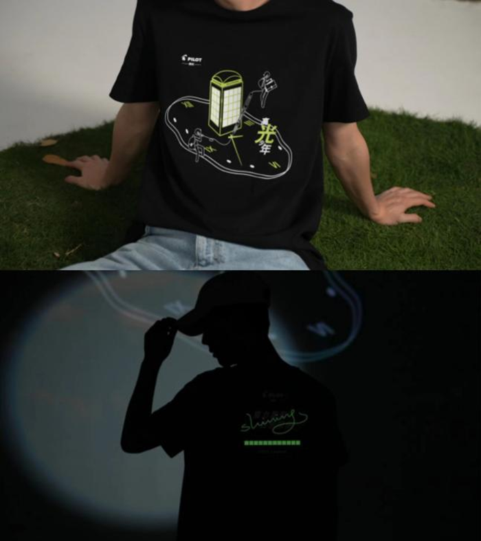 值得一提的是继去年推出的红蓝战衣后,百乐今年又更新迭代了全新的高考限定T恤——“高光战衣”。高光战衣在设计上融入了特殊的荧光材质,使其在黑暗的环境中可以闪耀斑斓星光,开启炫酷夜光模式,这也赋予高光战衣一层美好的寓意,寓示着每一位穿着战衣的考生都可以“身披光芒”。