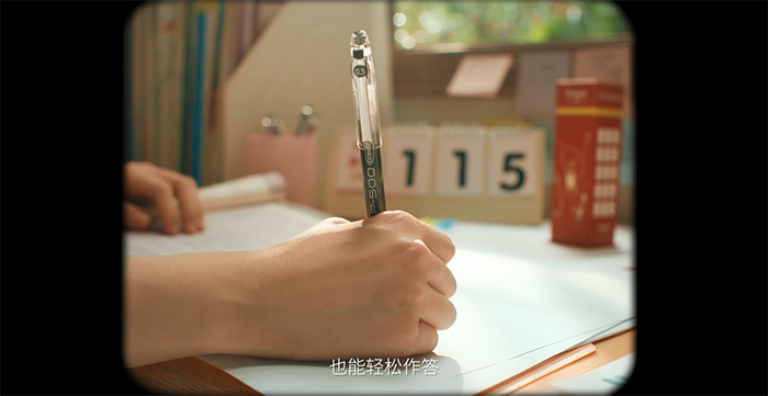 影片里支撑女主的不只是信念和未来自己的陪伴,还有无处不在的“考试神器”——百乐P-500考试笔。P-500作为一支考试专用笔,具有超大容量、书写顺滑、速干等特点,让考生在考场上可以持久战斗,书写更轻松。百乐也同步推出限定备考礼盒,礼盒内除P-500外,还有G-2、Juice up两款王牌考试笔,不同的产品卖点可以满足不同考生的产品需求。
