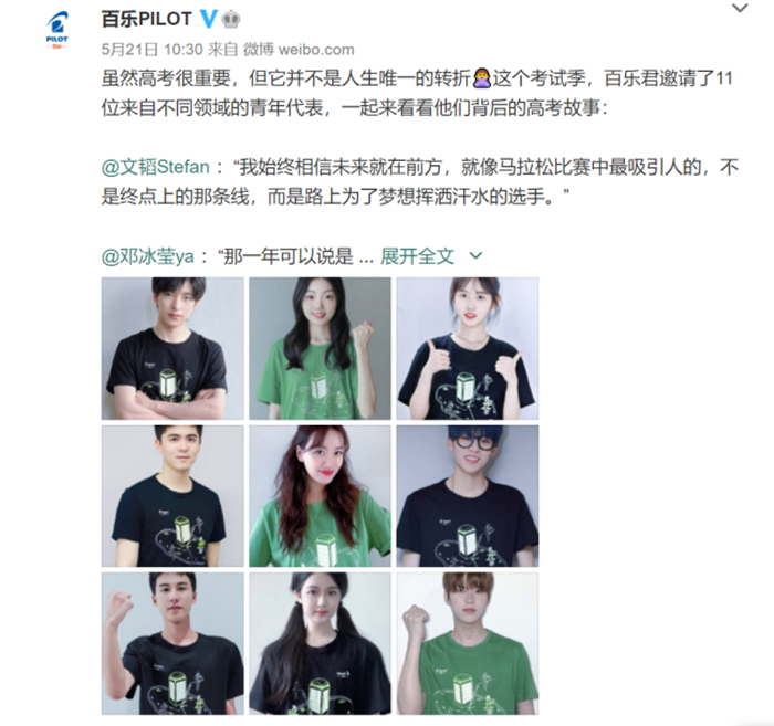 拥有百年历史的知名文具品牌百乐,从去年开始就以实际行动投身到助力高考的行列中开展了一系列高考加油活动。2021年百乐以“你很努力 百乐知道”作为传播主题,对话应届考生群体,塑造知你、懂你的品牌形象,打造有温度的品牌印记,同步打通线上线下渠道,倾力为高考学子和家长送出祝福与温暖。