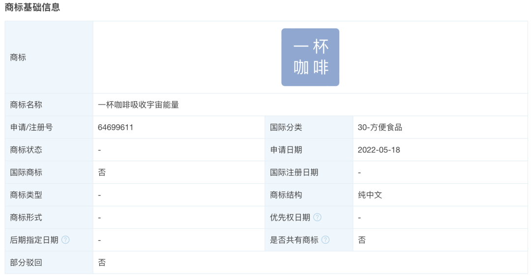 天眼查网站显示,华为技术有限公司注册申请了“一杯咖啡吸收宇宙能量”和“一标咖啡吸收宇宙能量”的商标,目前还在审核中。