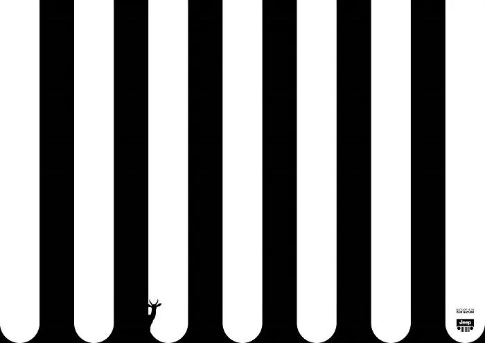 蝙蝠、鹿、狼、松鼠洞、山石……大自然的元素在竖条间“出没”。这些都暗含着品牌想对用户说的话:冒险家们,坐着Jeep去探险吧!