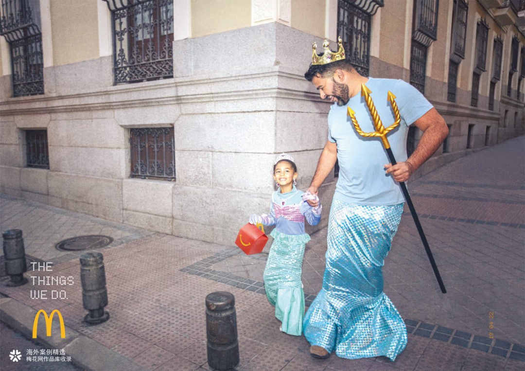 比如麦当劳(菲律宾)这组视觉海报,看似欢声笑语,却为我们带来同样的感动(高级煽情)。