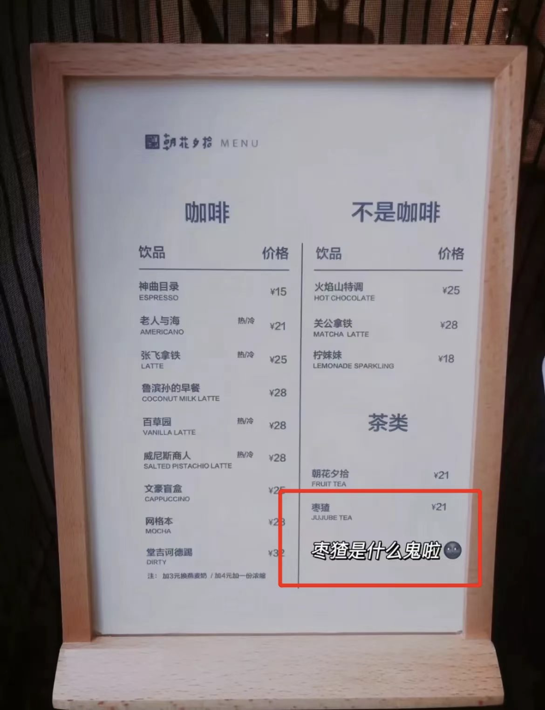 再看店内菜单,没有一点文学素养,怕是看不懂——
