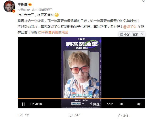 其中最搞笑的是某知名再就业男团,集体参与讨论,苏醒 、王铮亮、王栎鑫等先后发布免单题目及线索。 (哈哈,终于又可以营业了,感谢饿了么提供营业机会!栓Q)