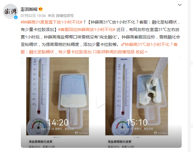 前有#钟薛高回应66元雪糕爱要不要#引发热议,后有#钟薛高31度室温下放1小时不化#的消息在网上不胫而走,钟薛高数次被推上风口浪尖