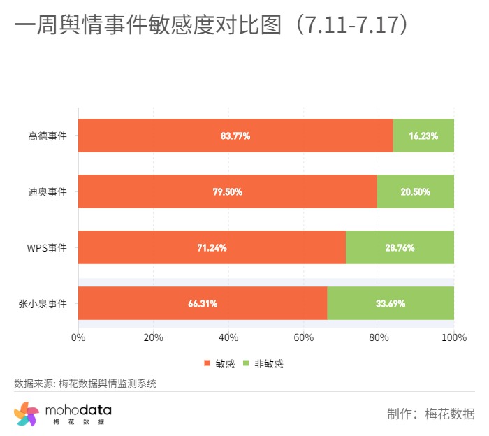 根据梅花数据舆情监测系统监测,在7月11日-7月17日,此事件共监测相关舆情声量总计声量11863条,敏感度83.77%。