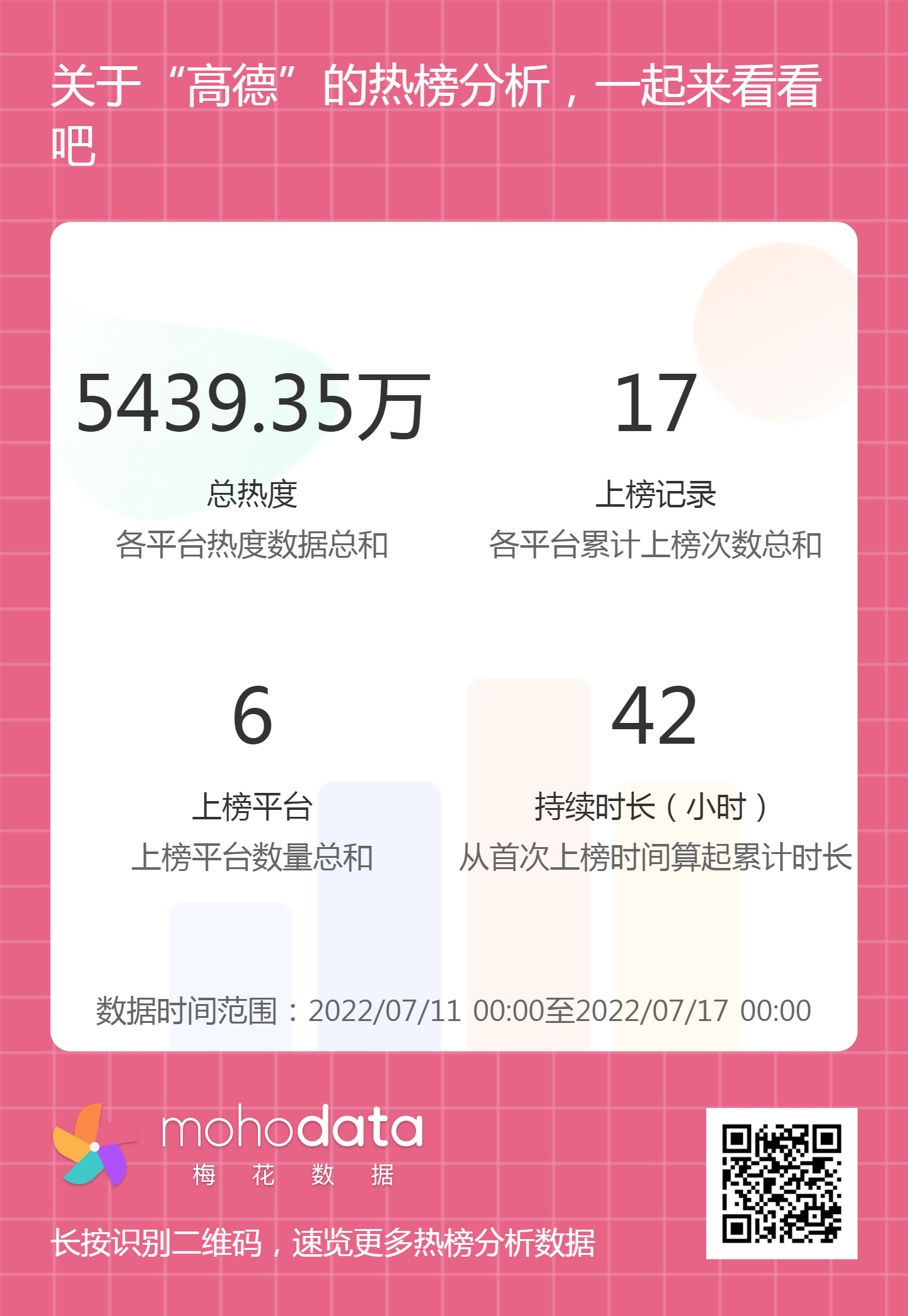 热搜方面,高德事件相关热搜热度总计5439.35万,上榜记录17次,上榜平台6家,持续时长42小时。详情可扫描以下二维码查看。