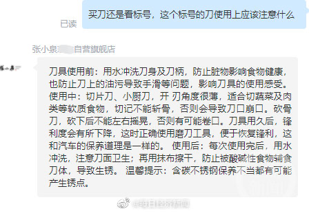 7月12日,一位网友称自己买的张小泉菜刀在拍蒜的时候断了,联系客服后,却得到了简简单单“不能拍蒜”的回复。