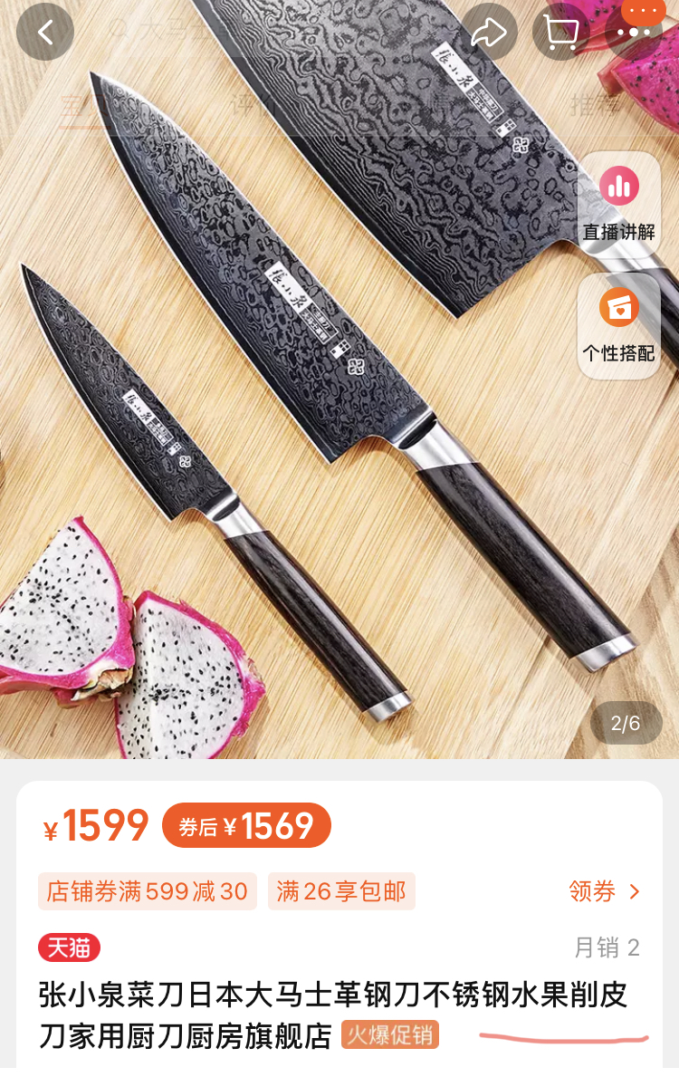 产品的高端化升级,让张小泉大获成功(避免低价内卷),此后张小泉不断扩充高端化系列。在淘宝官方旗舰店上,一把高端不锈钢水果刀售价达到1569元(券后)。