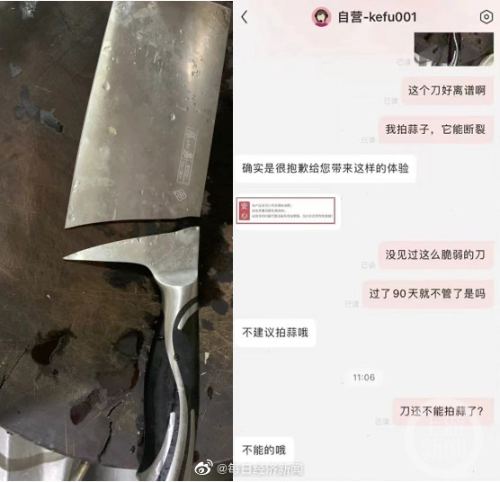 不过,有人晒出自己的断刀,也有人认为产品品质降低了。