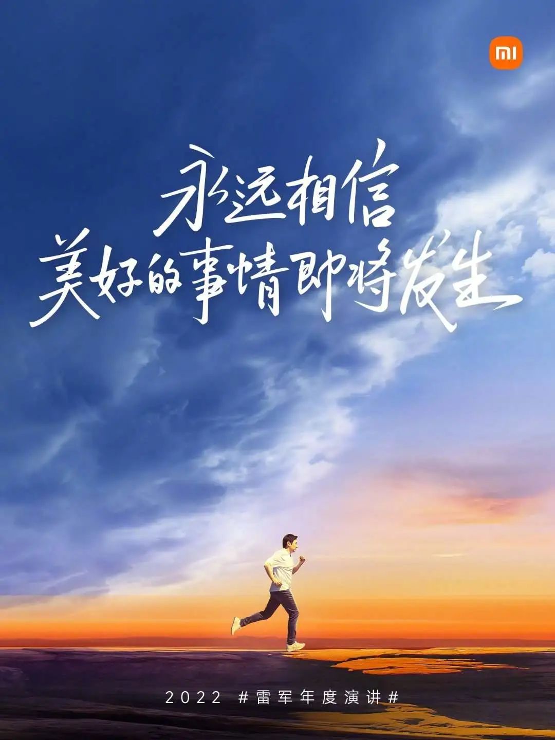 演讲的最后,雷军说到:“人生很长,无论如何,让我们保持信念:永远相信美好的事情即将发生。”
