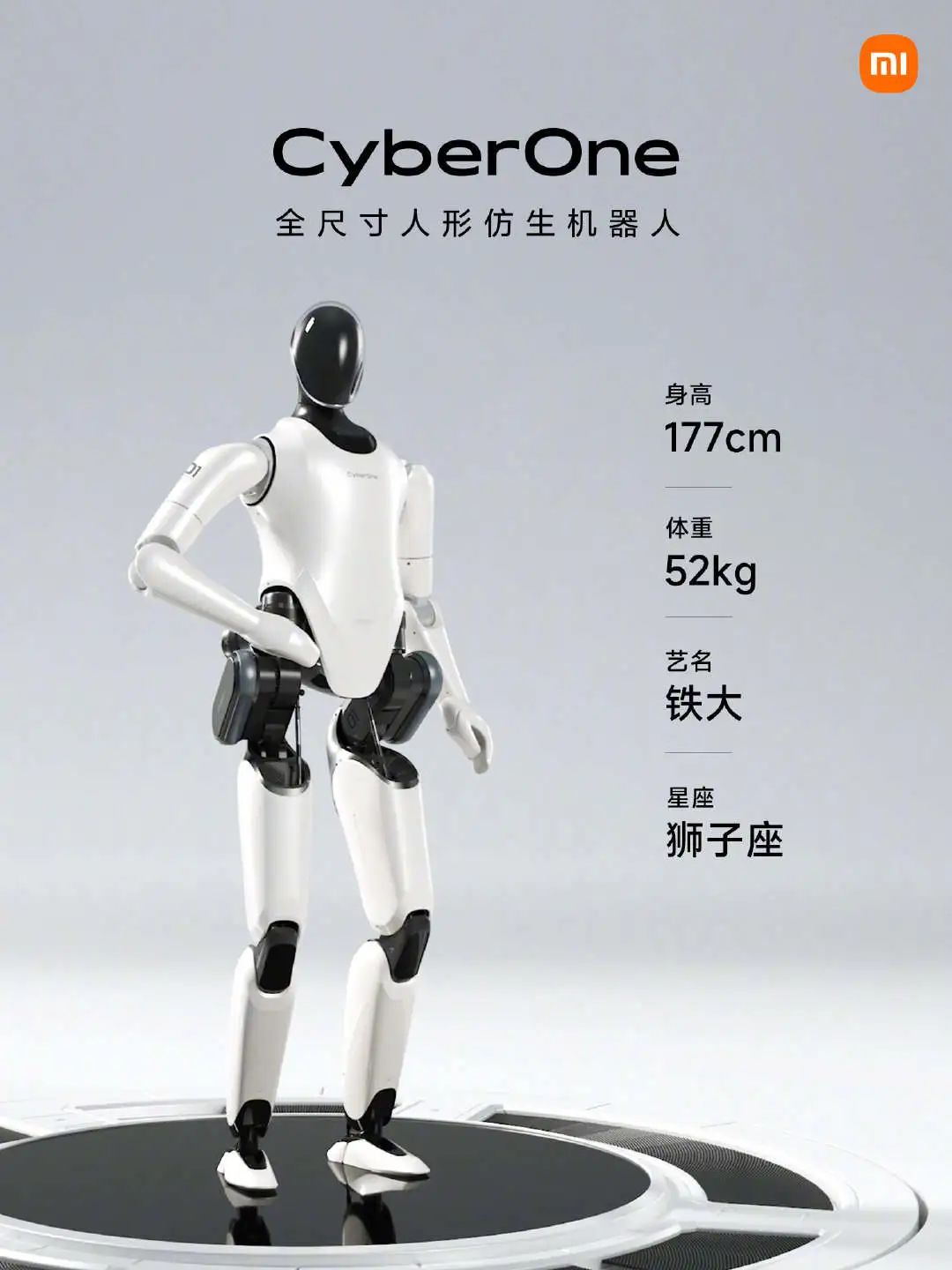 还有发布会亮点之一的小米首款“全尺寸人形仿生机器人”,本名CyberOne,艺名“铁大”。
