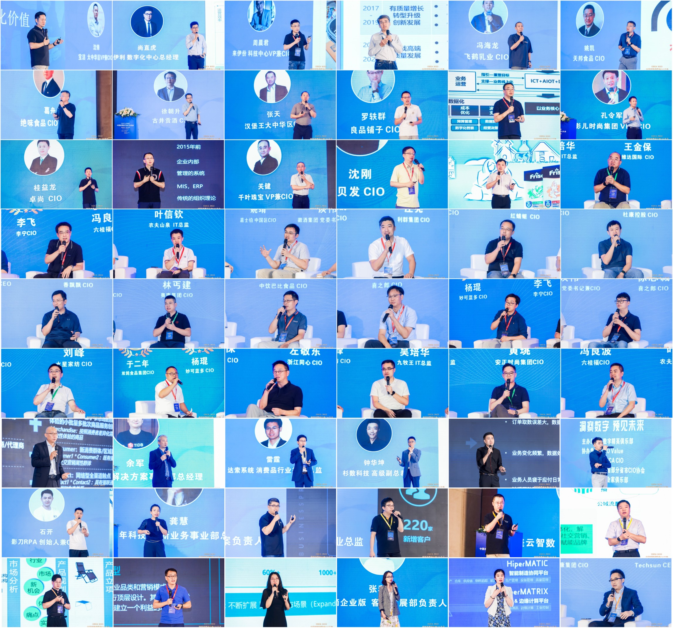 本次大会有上百位知名CIO发言分享和互动嘉宾,包括宝洁大中华区VP兼CIO沈峰,伊利集团数字化中心总经理尚直虎,来伊份集团科技中心VP兼CIO周晨君,华润雪花啤酒CIO郭华,飞鹤乳业CIO冯海龙,天邦食品CIO姚凯,绝味食品CIO葛舟,古井贡酒CIO徐朝升,隆力奇集团CIO刘志强,汉堡王大中华区CIO张天,菲仕兰大中华区CIO陆玮,良品铺子集团CIO罗轶群,金徽酒集团CIO郑飞,孩子王 VP兼CTO何辉,千叶珠宝 VP 兼CIO关健,影儿时尚 VP兼CIO孔令军,贝发集团CIO沈刚,卓尚集团CIO桂益龙等嘉宾出席大会并带来精彩演讲。高峰对话一:盛景嘉成基金合伙人颜艳春、嘉士伯中国区CIO姚靖、徽酒集团CIO谈伟、喜之郎CIO徐志诚、中饮巴比食品CIO周伟、奥康集团CIO林丐建、香飘飘CIO宋汝瑶、杜康控股CIO邵博、红蜻蜓CIO姚跃朋、利群CIO庄亮等嘉宾参与圆桌讨论“后疫情时期数字化建设的重点”;高峰对话二:由双鸽食品CIO于二年主持,妙可蓝多CIO杨琨、李宁CIO李飞、六桂福CIO冯良波、农夫山泉信息总监叶信钦、安正时尚集团CIO黄珧、水星家纺CIO刘峰、九牧王IT总监吴培华、维达国际CIO王金保、浙江同心CIO左敬东作为讨论嘉宾,共同探讨“消费品数字化转型的难点”。此外,还有王老吉CIO李总、梦洁家纺CIO刘总、煌上煌CIO段总、煌上煌CTO王总、巴克斯酒业CIO范总、绝味食品副总裁张总、伊利数字化中心技术总监程总、一鸣食品CIO王总、百草味CIO刘总 、仟吉食品CIO刘总、粒上皇CIO蔡总、新希望乳业CIO胡总、新希望乳业CTO刘总、认养一头牛CIO黄总、斯凯奇VP兼CIO刘总、中哲慕尚信息技术部总监颜总、君乐宝CIO赵总、利和味道CIO李总、林清轩数字信息中心总经理范总、七匹狼副总裁陈总、七匹狼总监吴总、波司登信息总监朱总、爱唯服饰CIO王总、准者体育CIO蔡总、太平鸟集团信息技术总监付总、九豫全食品CIO熊总、豫园文化饮食集团数字化总经理施总、禹王集团CIO刘总、中国黄金集团科技信息部总经理周总、广州医药科技总经理黄总、三福百货CIO唐总、日播时尚IT总监沈总、盈投控股集团CIO兼安吉尔净水集团IT总经理吴总、万生堂CIO王总、爱婴室CIO孙总、第六空间家居集团 CIO高总,狮王日化CIO于总、上美化妆品IT总监李总、普灵仕集团CIO薛总、361°信息总监胡总、紫燕食品副总裁周总、五粮液消费者运营部副部长田总、 漾美家居CIO魏总、哈尔斯信息中心总监周总、东阿阿胶智数部副总经理林总、百亚股份部长肖总、非凡中国集团IT总监林总、蒙牛PLM项目负责人陈总、扬子江药业龙凤堂中药信息部负责人蒋总、硕腾中国大中华区CIO陶总、贵人鸟IT负责人薛总、才子服饰IT中心总监胡总、婵之云信息总监王总、意尔康体育CIO余总、贝贝熊 CIO汪总、酷乐潮玩信息部副总戴总、双汇信息总监王总、劲霸男装CIO 耿总、山东福瑞达CTO刘总、熹茗茶业信息负责人黄总、顾家家居副总经理徐总、百雀羚 IT总监董总等数百位知名企业CIO、IT总监、信息化负责人莅临现场和互动嘉宾。36家优秀信息化解决方案服务商精彩亮相和分享,展示了他们的最新技术、创新产品和解决方案,吸引众多参会嘉宾学习和合作交流。