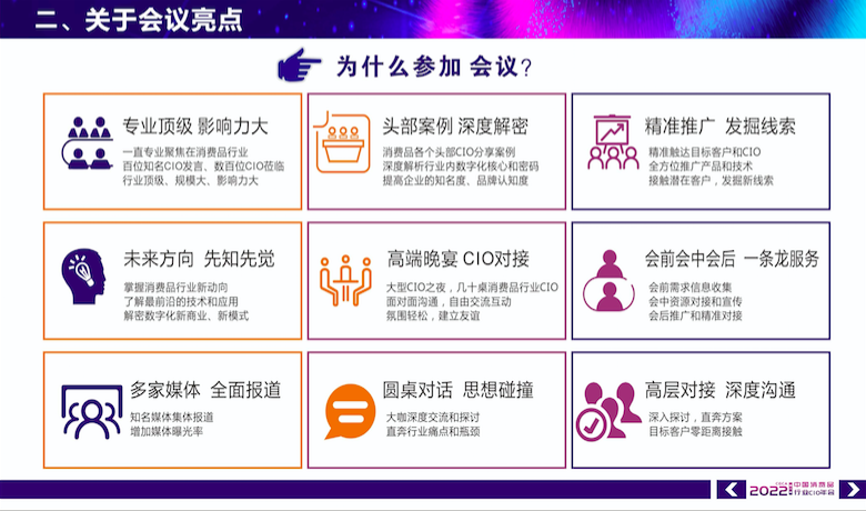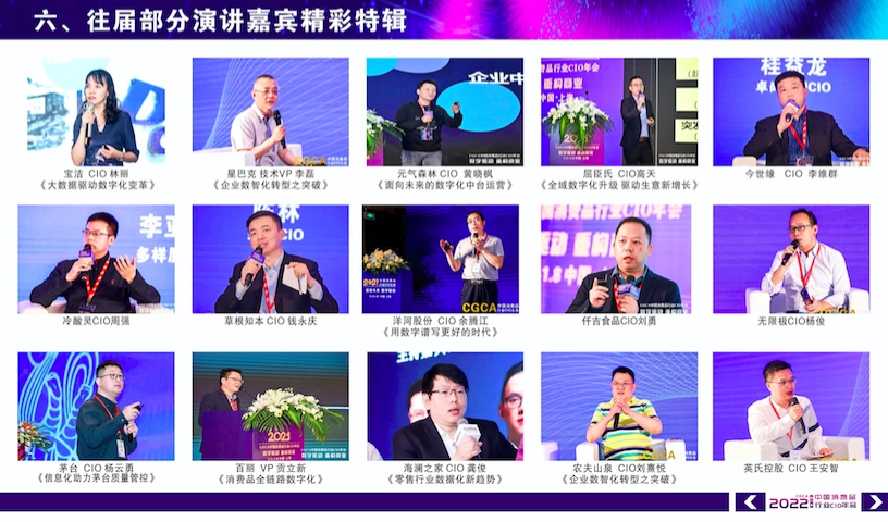 “CGCA中国消费品行业CIO年会”是消费品行业CIO中极具影响力的盛会。作为国内目前唯一 一家专注消费品行业聚焦CIO的主办方,CGCA致力于打造行业内高质量、高效沟通、高端峰会。数智时代,通过分享成功的商业案例、创新的技术理念,帮助行业决策者洞察未来趋势并推动行业的发展。