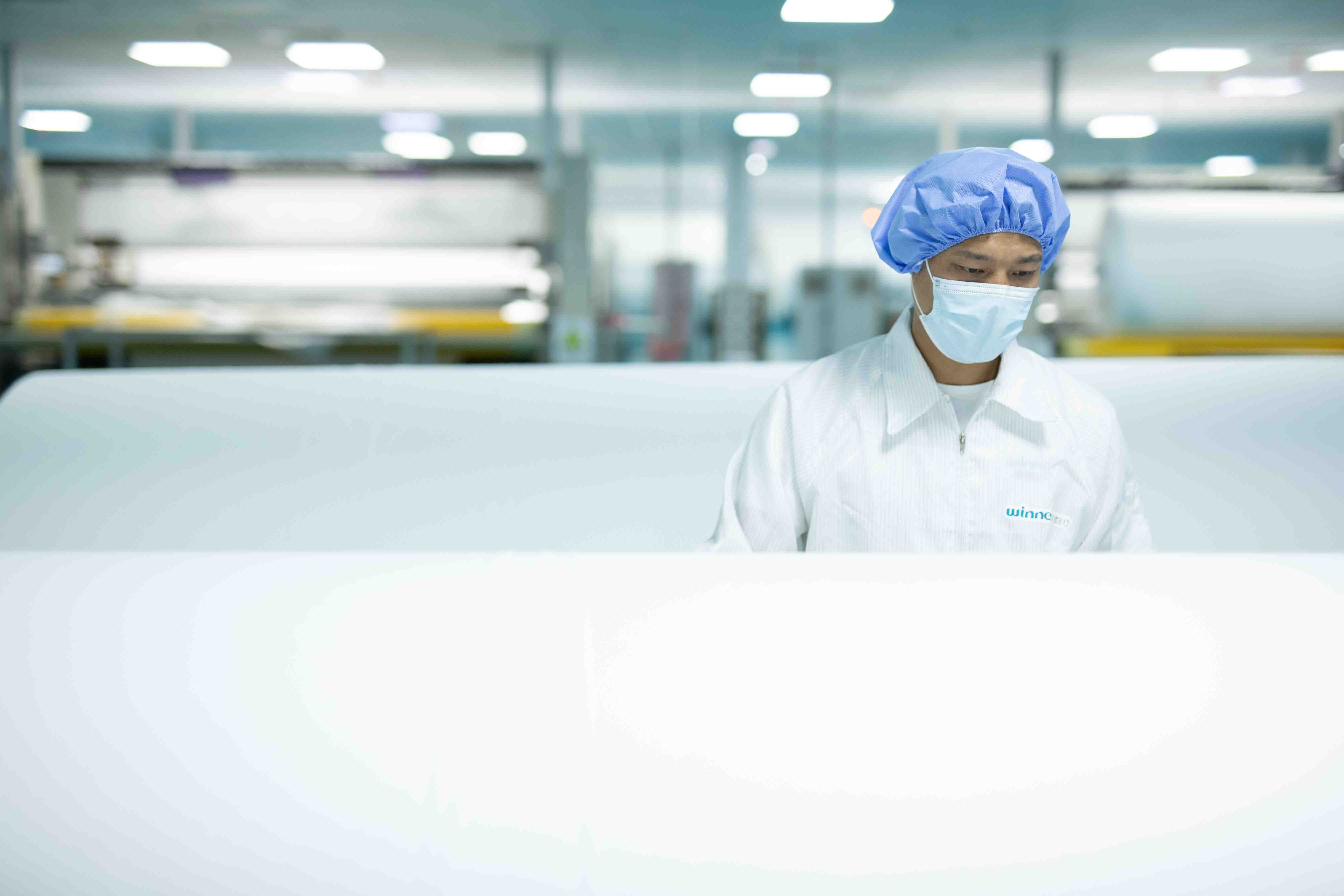 90后车间班长方俊,每天置身于水刺无纺布车间流水线,还不忘从细腻的观察出发,创新改进水刺收卷方式,将磨损降到最低,大大提升了产品的柔软性和细腻程度。