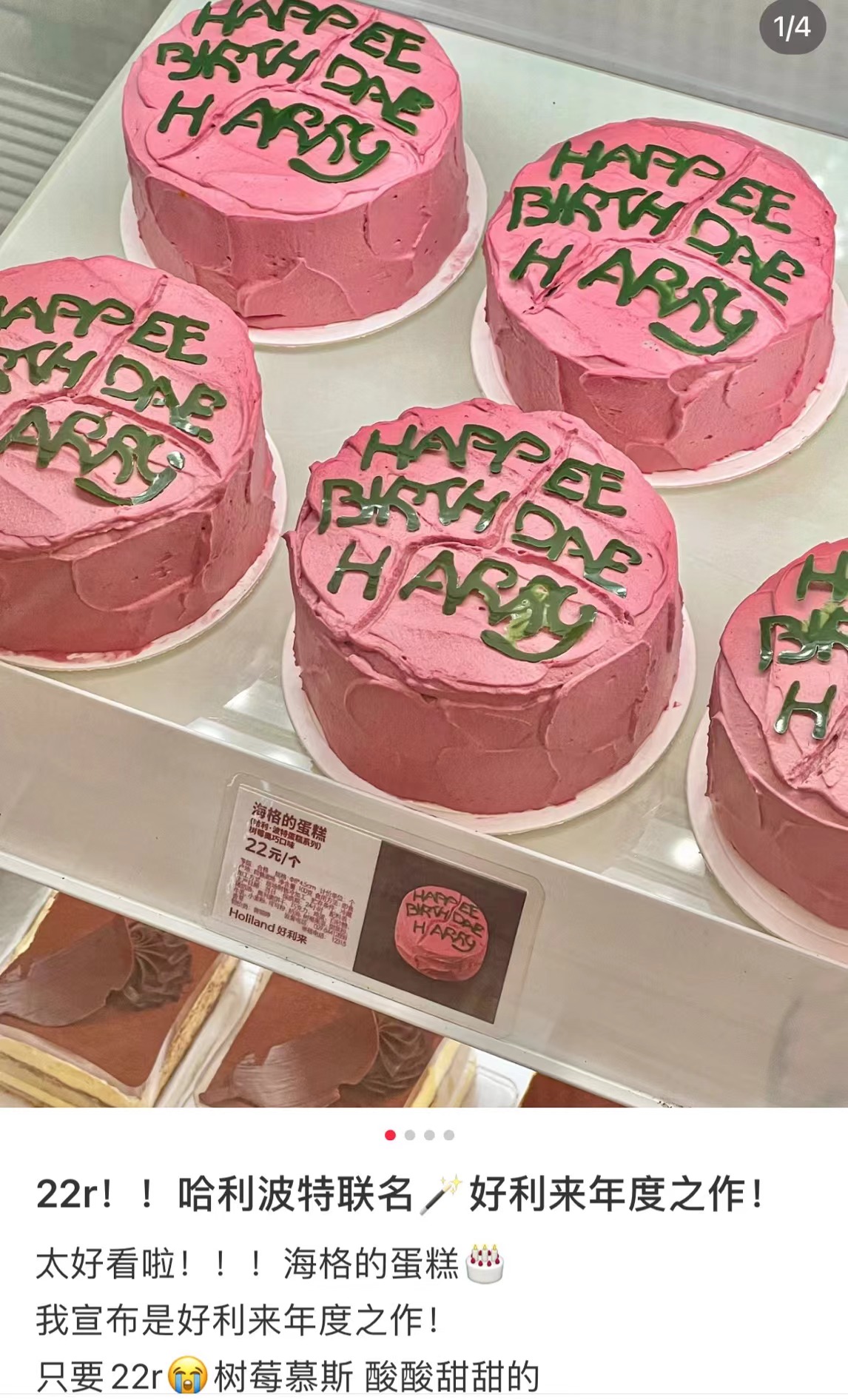 好利来的迷你版“海格的蛋糕”上,也十分还原地保留了该拼写错误。
