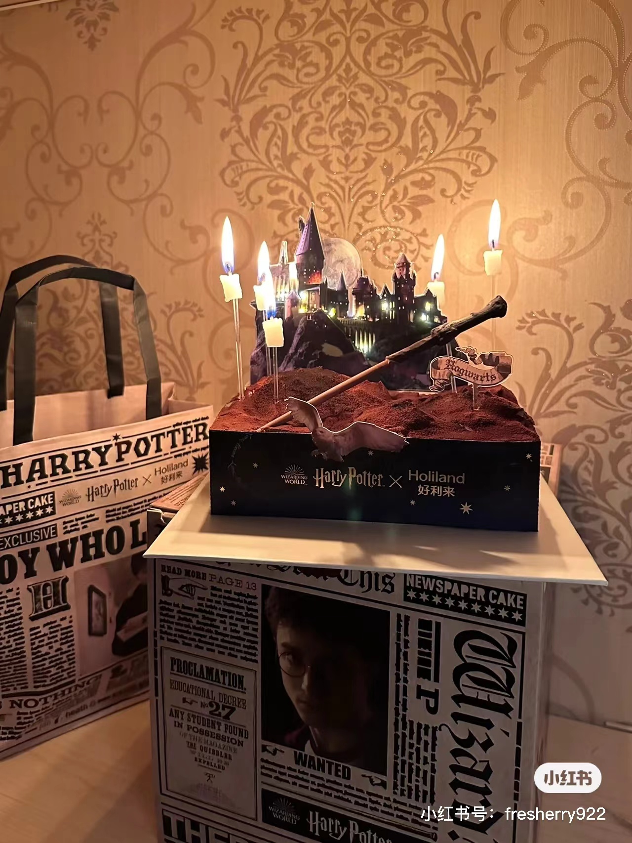 在原著中,海格亲手做了一只粉色生日蛋糕送给11岁的哈利。蛋糕上面的祝福语写着“HAPPEE BIRTHDAE HARRY”(应为HAPPY BIRTHDAY HARRY)。