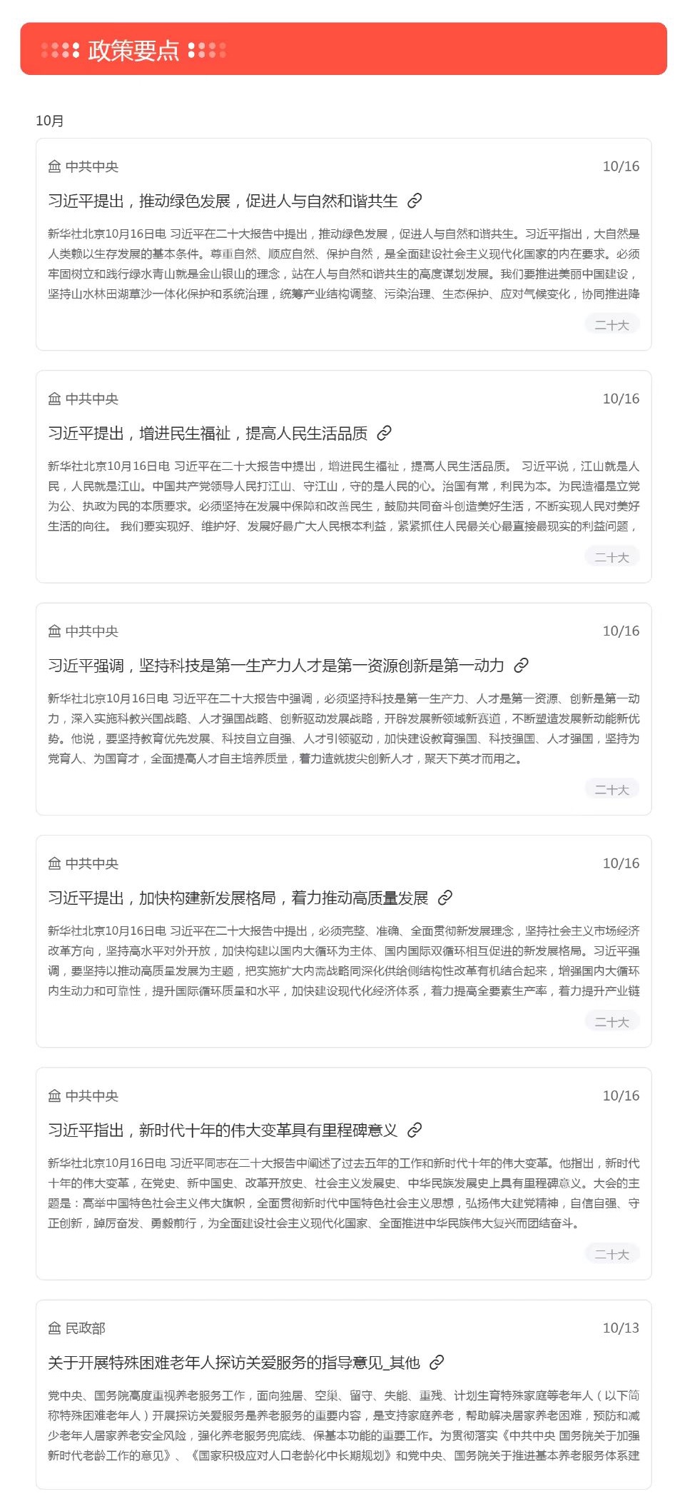根据梅花数据要政盘点统计,上周共收录重要政策信息共计76条,其中二十大报告与地产政策较多,建议重点关注二十大报告以及《促进中小企业特色产业集群发展暂行办法》等政策。