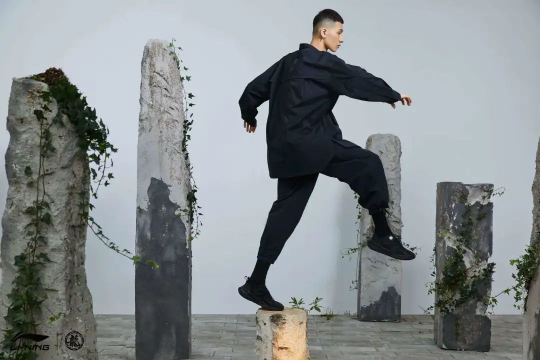 除了这些,李宁还与成龙联名推出功夫系列,把潮流设计与中国功夫相结合,注入《孙子兵法·势篇》、“木石之势”的概念。