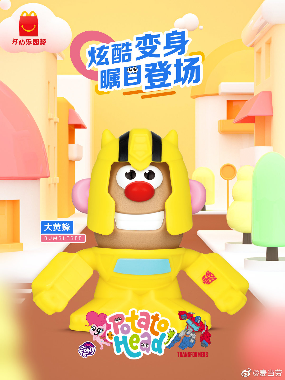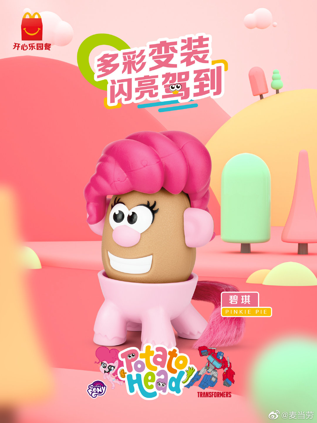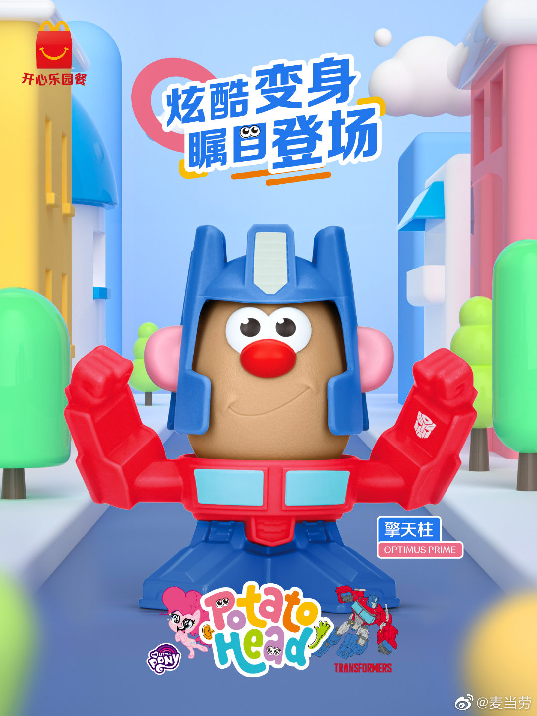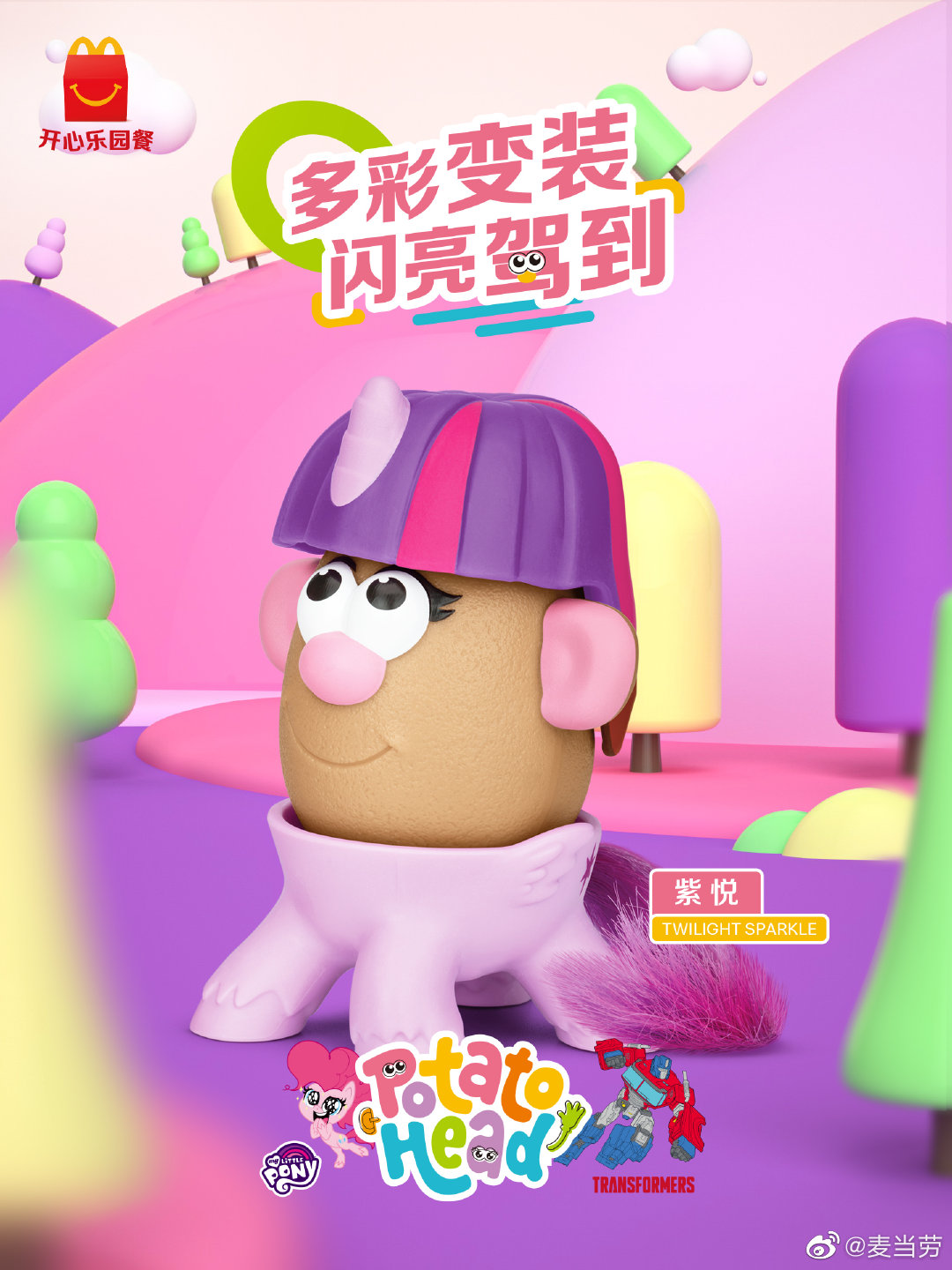 这是麦当劳9月底刚更新的儿童乐园餐里的玩具,由《玩具总动员》里的土豆先生、小马宝莉还有变形金刚多方联名的合作款。