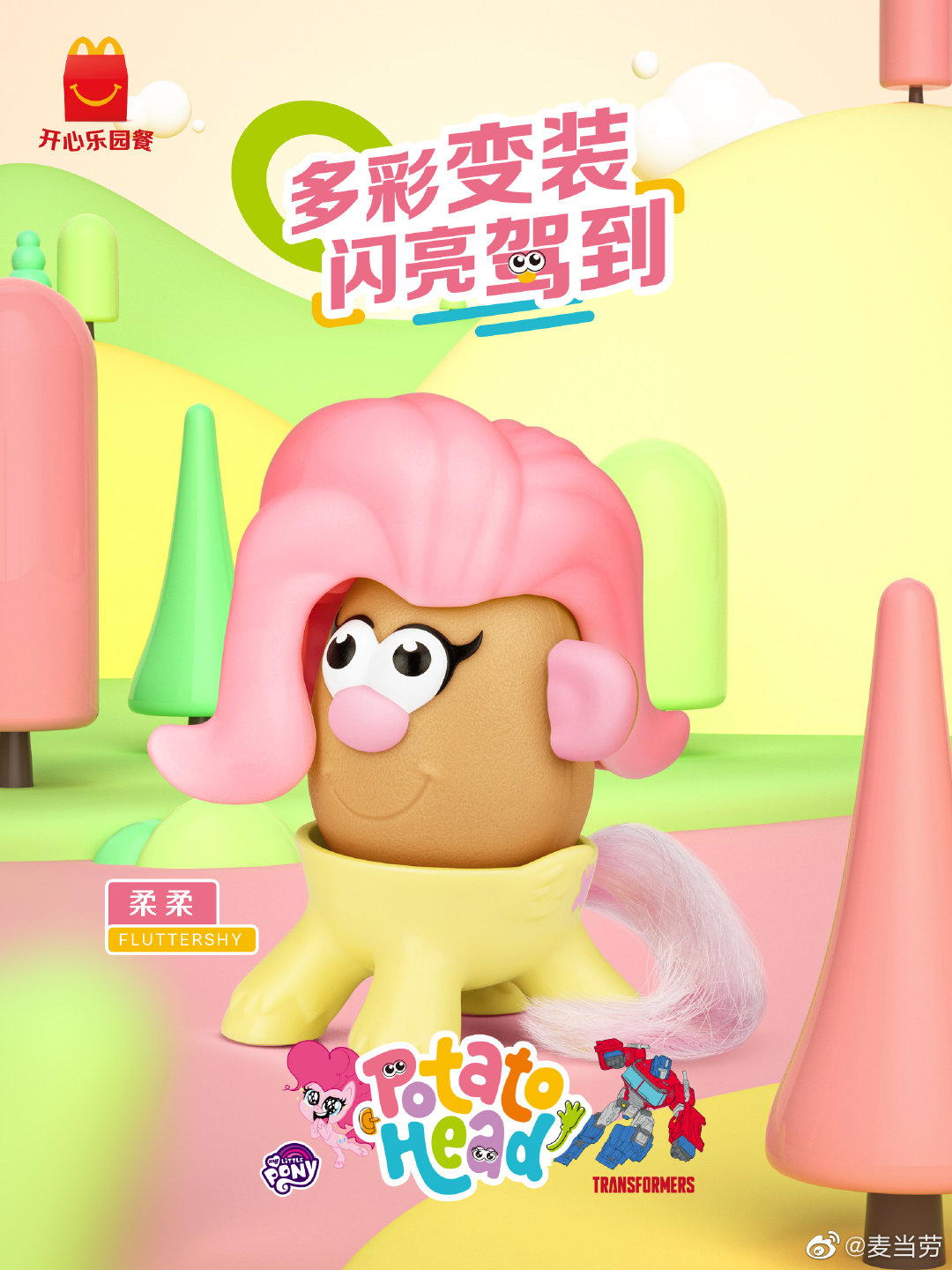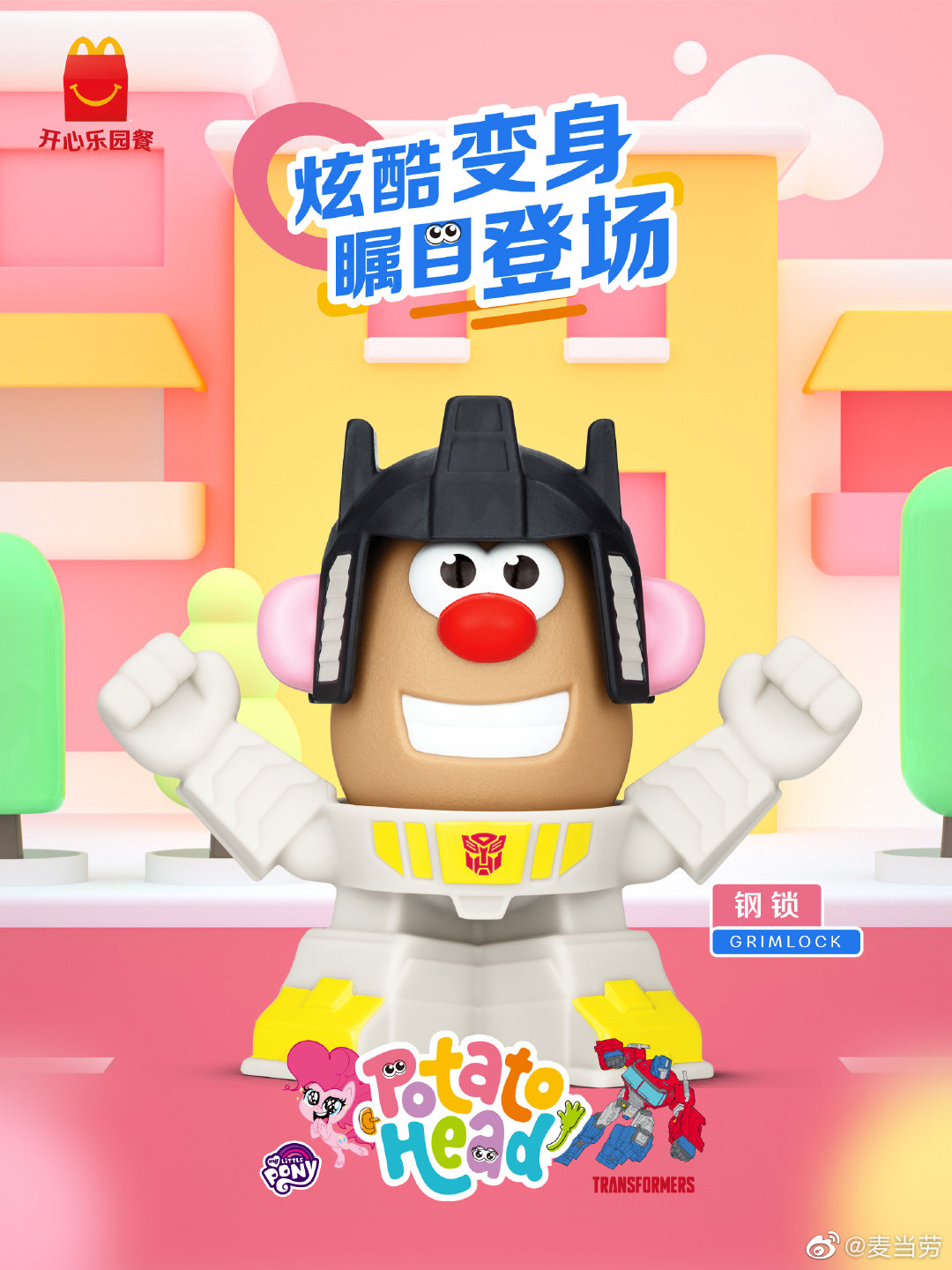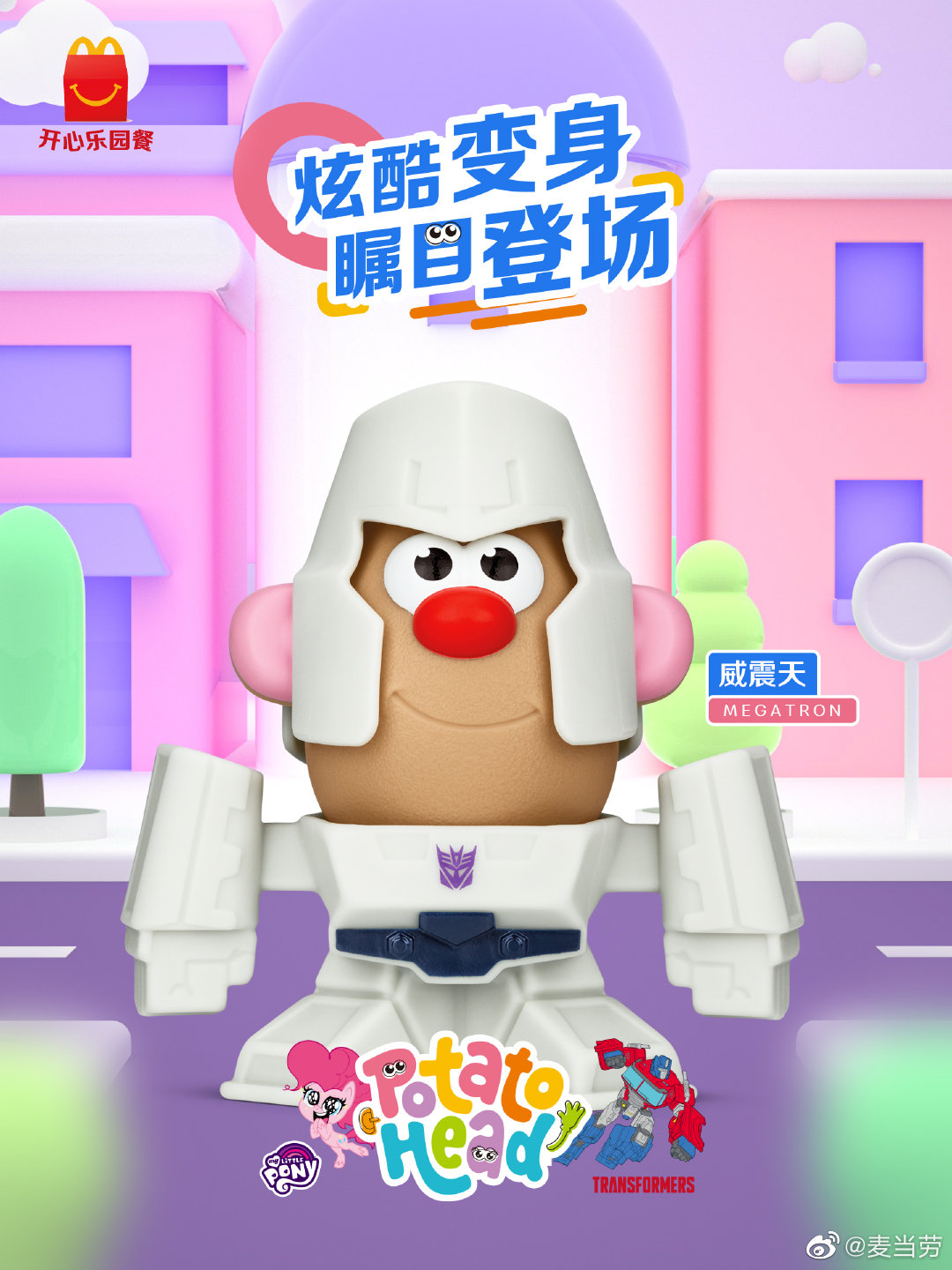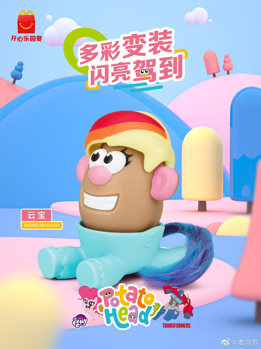 这是麦当劳9月底刚更新的儿童乐园餐里的玩具,由《玩具总动员》里的土豆先生、小马宝莉还有变形金刚多方联名的合作款。