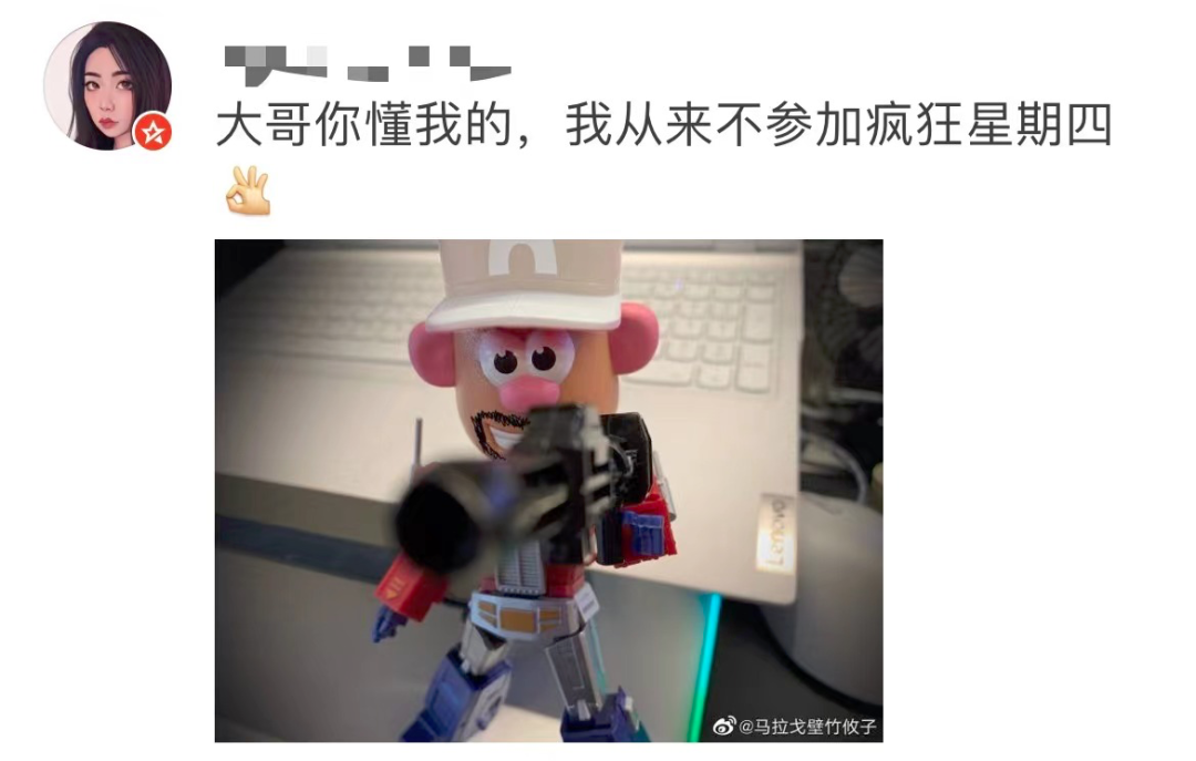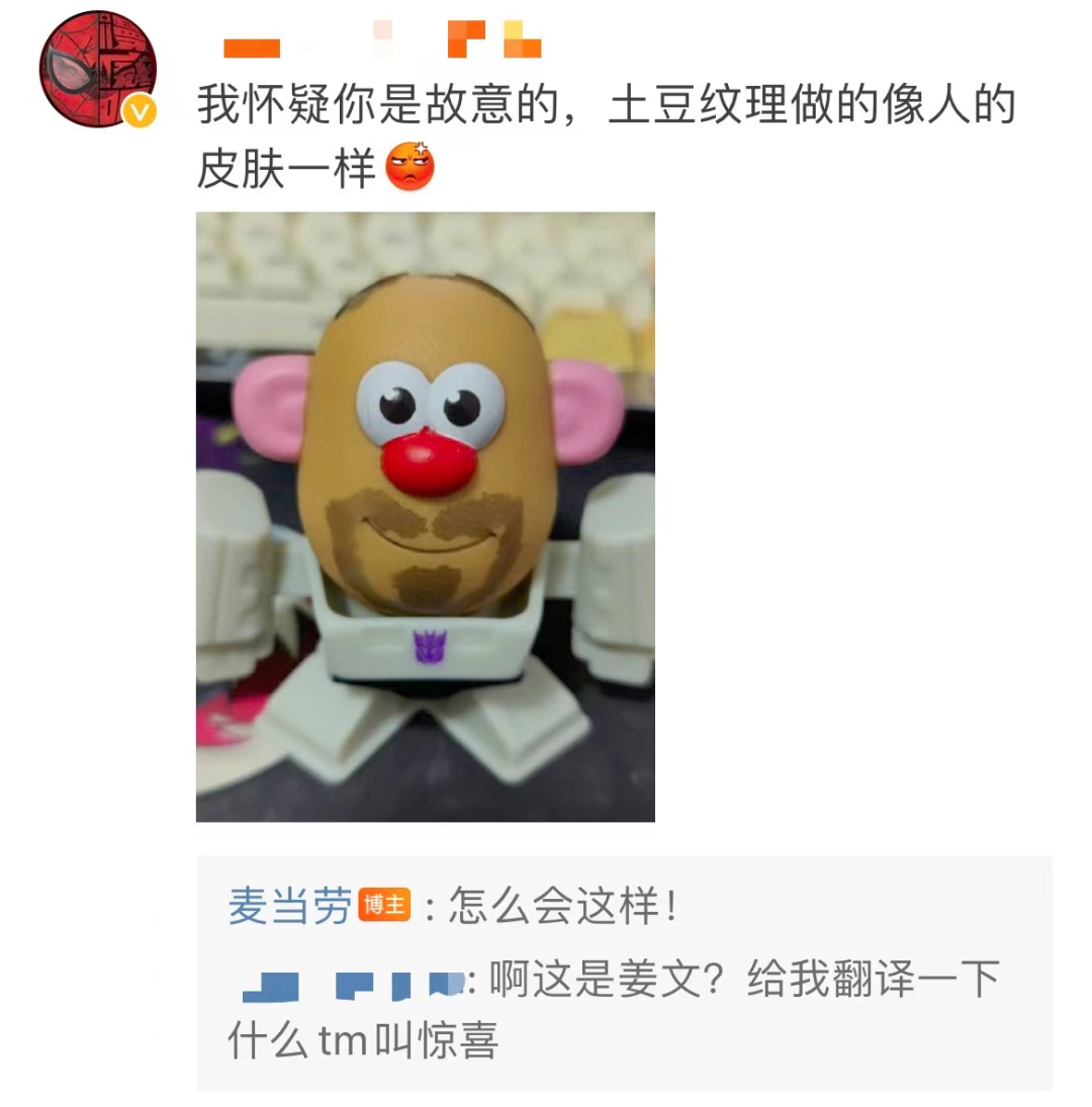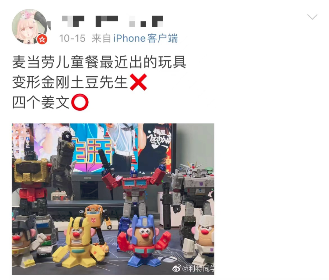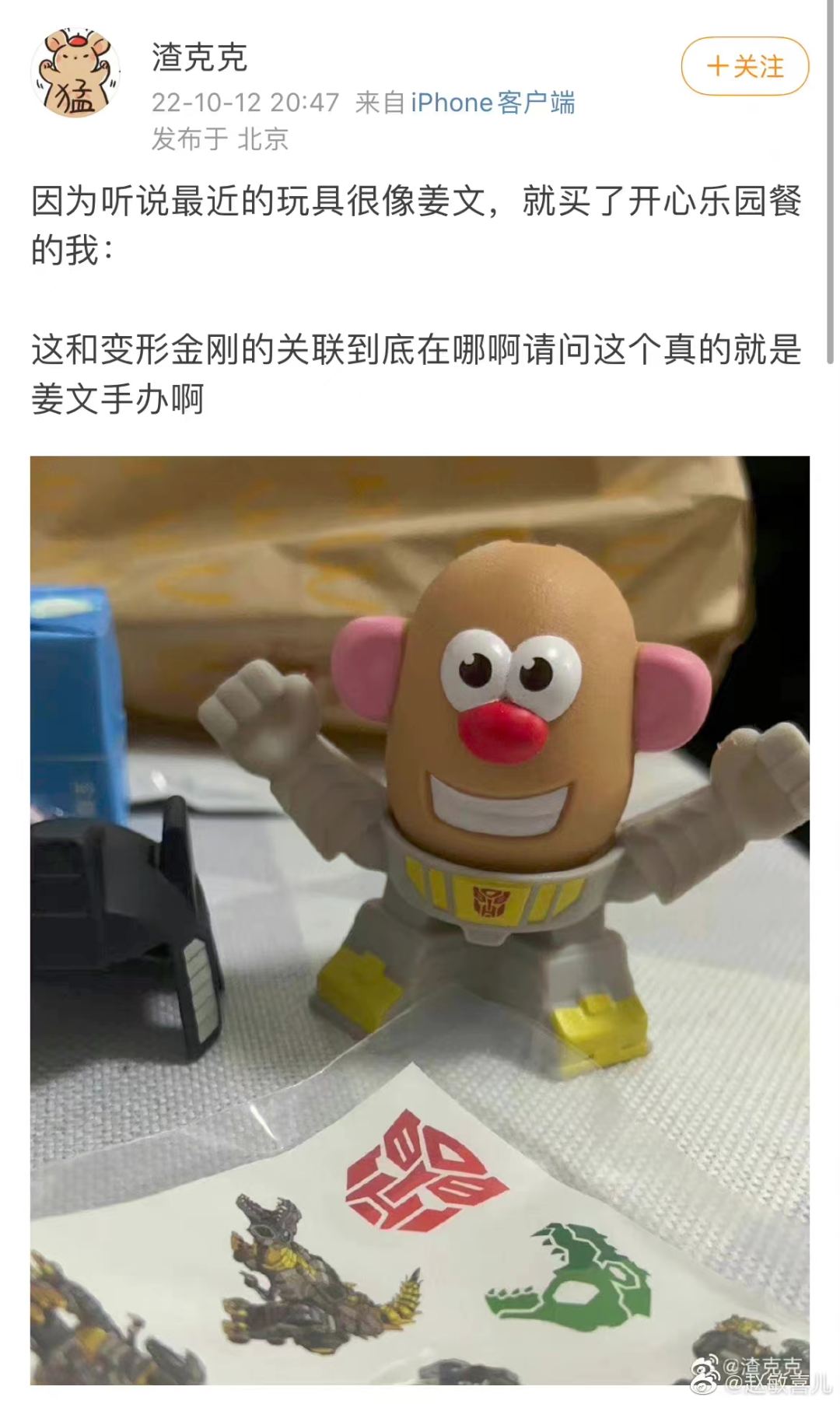 事情的来源是网友@渣克克 在微博吐槽麦当劳的联名玩具和变形金刚没什么关系,倒是很像姜文。