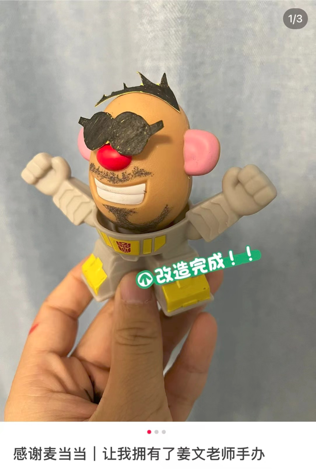 上一次出圈的是肯德基套餐玩具会跳舞的可达鸭,现在麦当劳的新玩具“土豆先生”也火了,因为有人说它长得像姜文……