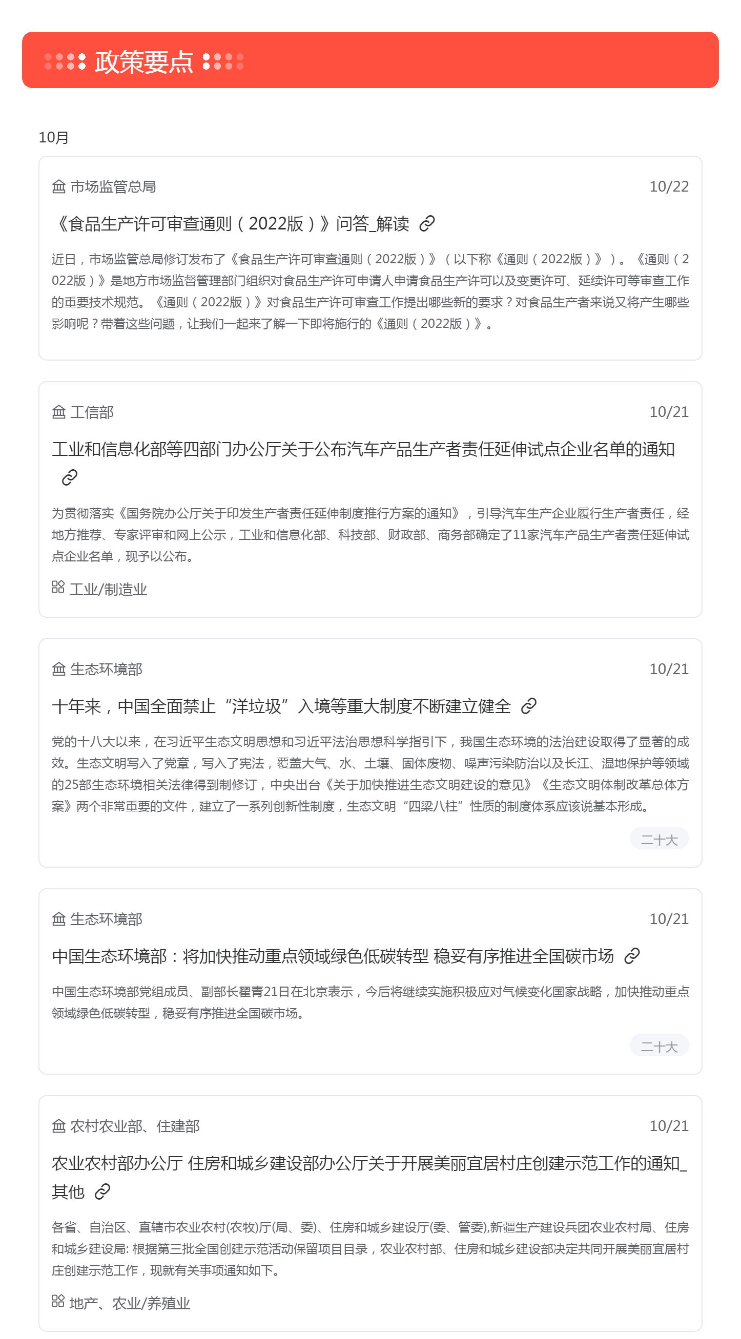 根据梅花数据要政盘点统计,上周共收录重要政策信息共计57条,其中二十大报告与乡村振兴相关政策较多,建议重点关注。