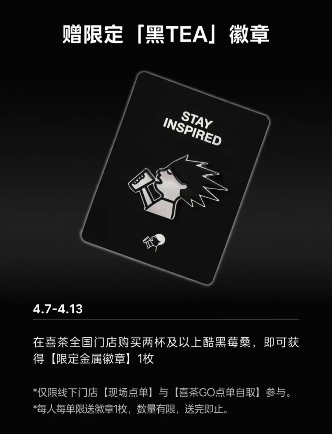 点两杯,附赠一个「炸毛喜茶小人」的徽章(限量发售)。