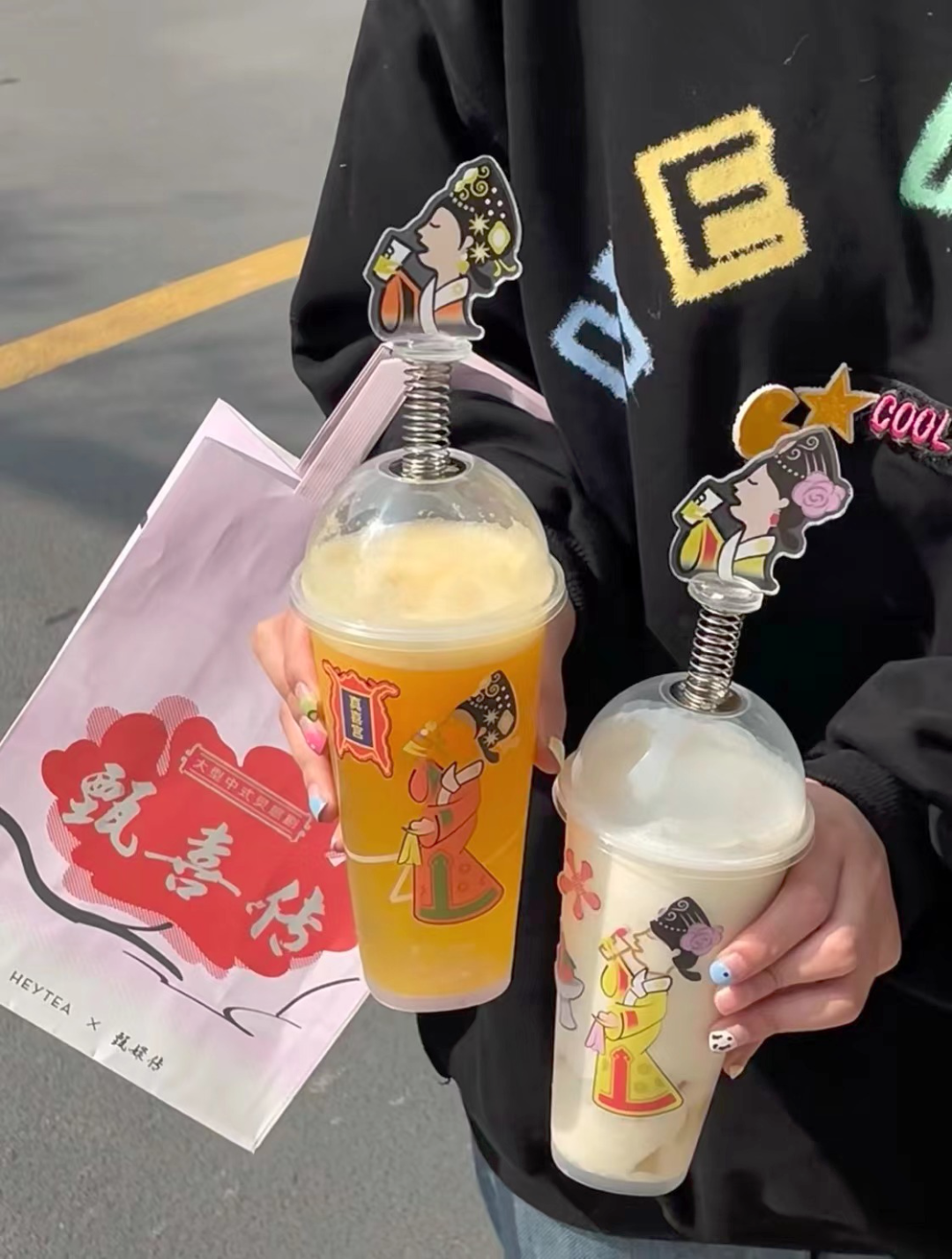 有趣的是,喜茶还将logo上的小人穿上古装,给联名加足戏码。
