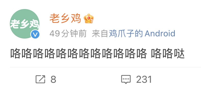 在微博上,鸡爪子的工作日常竟是咯咯哒。