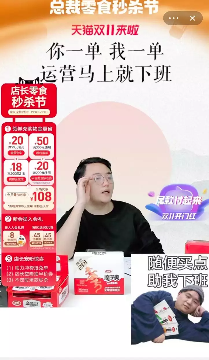 卫龙这波营销真是一股清流。当双十一店家们扯着嗓子,消费者“不堪其扰”,卫龙的“佛系”姿态就显得十分符合零食的“休闲感”;而相比于严重内卷的抖音直播间,卫龙在天猫直播间整活,让人意想不到。