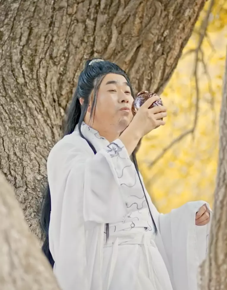 视频中,男女两位侠客在银杏谷中练剑、吹笛、喝酒……备受争议的是男主角,不合适的妆造和略微呆滞的眼神,都与现代古装剧中的美男子形象产生非常强烈的反差。