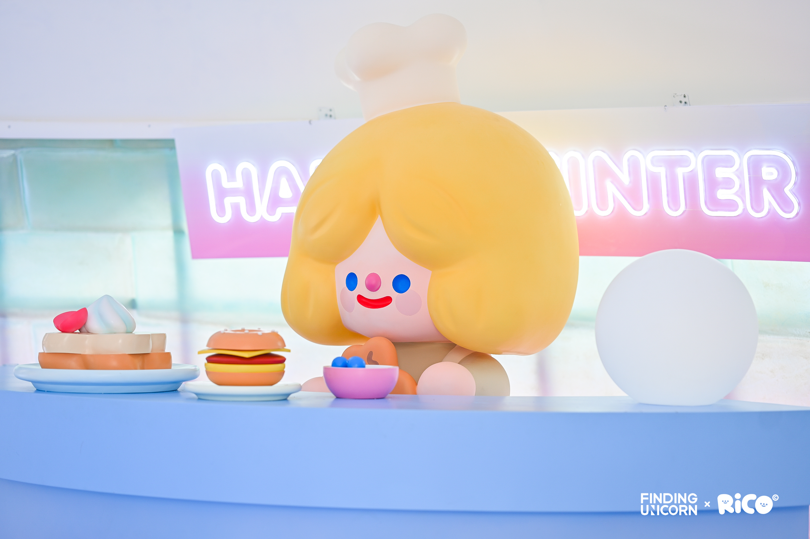 不止于此,作为触达新老用户的重要一环,寻找独角兽同步拓展线下玩法,携RiCO亮相线下美陈展“冬日梦想小镇”,以新奇的线下创意、艺术体验,让IP真正走近年轻消费者,回应年轻一代对于艺术价值的精神需求。