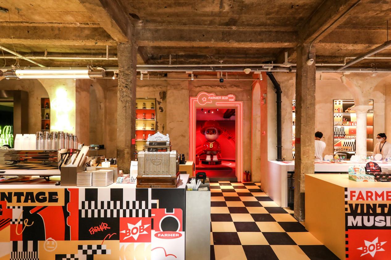 与此同时,极具怀旧氛围的复古音乐商店在上海迅速落地,画廊、文创、潮牌、咖啡合为一体,沉浸式的场景与体验成功撩拨粉丝的感官神经。展内FARMER BOB第六代复古音乐人系列新品同步亮相,从线上到线下,完成延续和闭环。