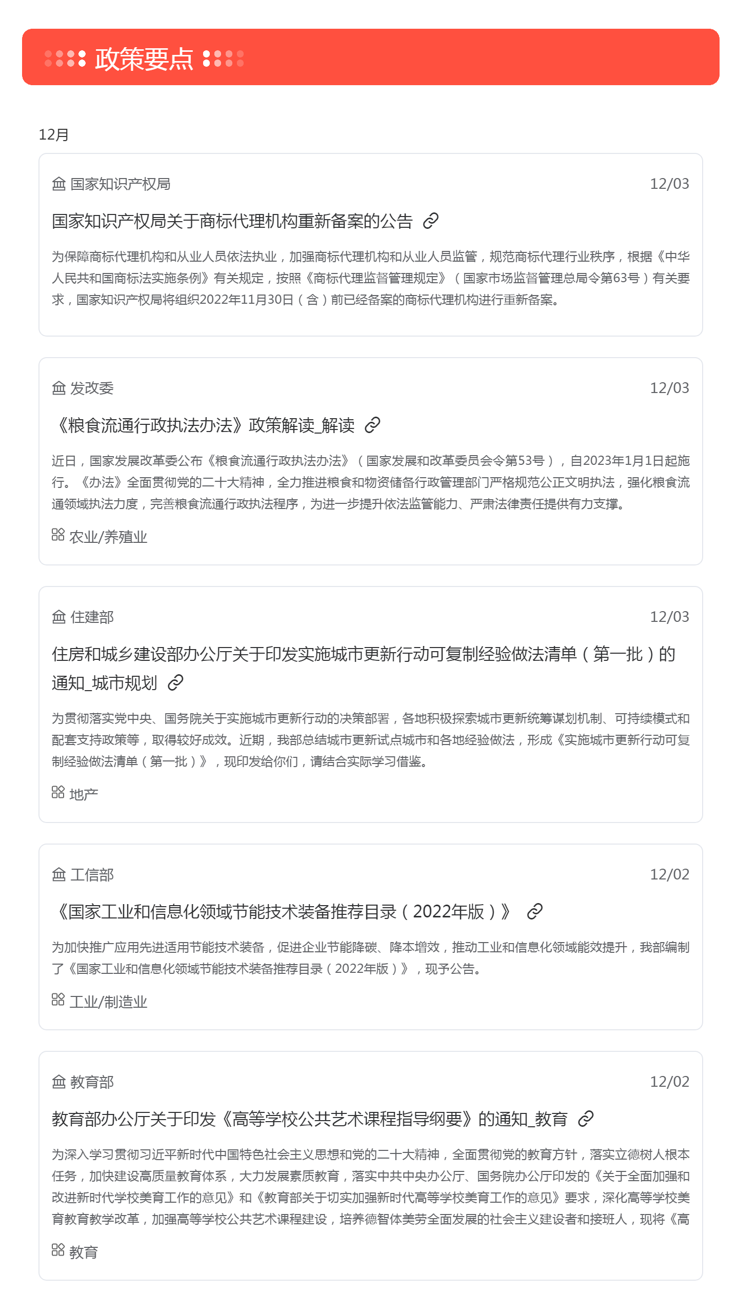 根据梅花数据要政盘点统计,上周共收录重要政策信息共计86条,其中涉及农业、教育、金融、地产等多个领域,建议重点关注《粮食流通行政执法办法》、《高等学校公共艺术课程指导纲要》、《关于开展养老保险公司商业养老金业务试点的通知》等政策。