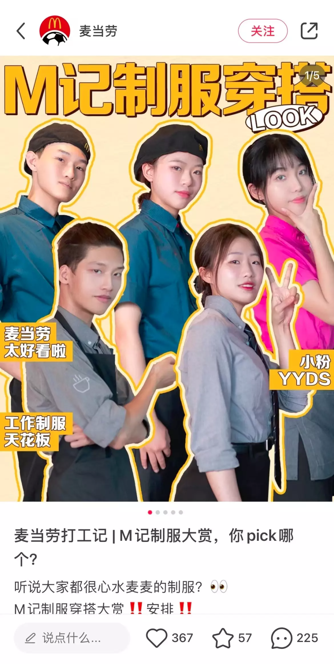 在此之前,我们就看到,麦当劳在社媒分享过不同岗位的制服穿搭,还在店内上演时装秀。