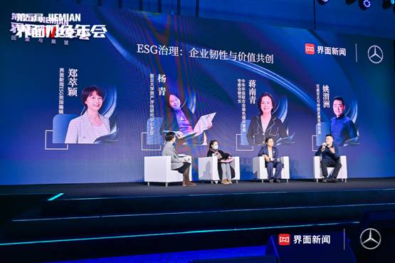 圆桌论坛围绕《ESG治理:企业韧性与价值共创》这一话题进行探讨。由界面新闻ESG资深编辑郑萃颖作为圆桌主持,复旦大学资产评估研究中心主任杨青,中华环保联合会绿色循环普惠专委会秘书长蒋南青,百威亚太可持续发展采购总监姚渭洲参与这一环节的讨论。