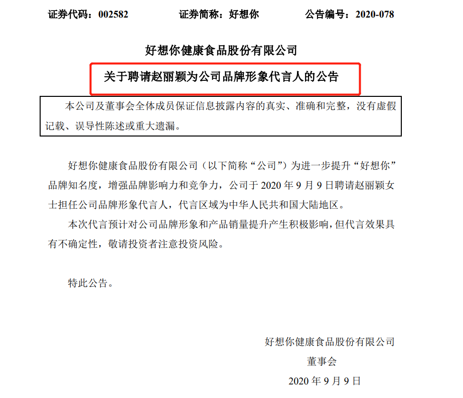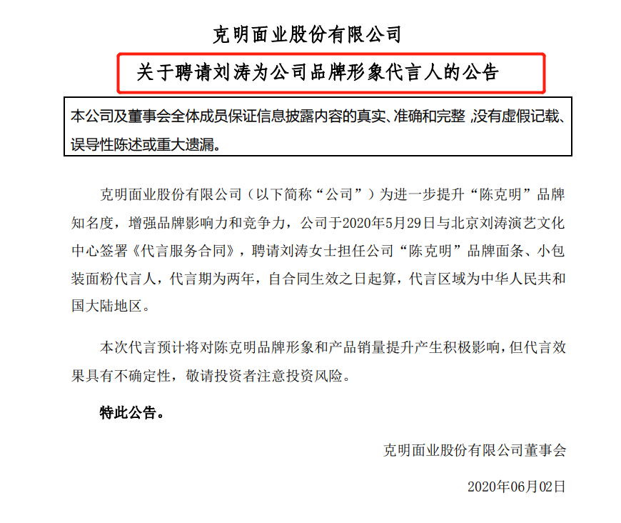 上市公司聘请艺人当代言人的现象很多,但是专门发公告的并不多,而公告还把合同披露的这么细节的则更少。
