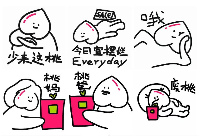 无独有偶,为宣传新品“霸气一升桃”,奈雪以“摆烂桃”为主角,画了一系列简笔头像,在美团上日更,成功吸引年轻人注意,并产生了追更一族。由此,“摆烂桃”成功带货品牌新品,据官方数据奈雪的桃子系列已销售超100万杯。