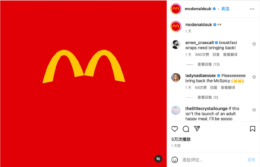 最近,麦当劳又搞事情。在ins等社交平台上,英国麦当劳(McDonald’s UK)悄悄更新了头像,金色的“M”变成两个分开的符号。