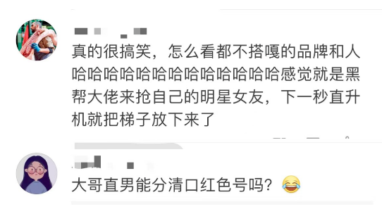 但尴尬的是,硬汉探店美妆能探出点啥?比起品牌与产品,网友更感到新奇。有人觉得张涵予像来谈收购的,有人直接脑补出了一段大片剧情,还有人质疑大哥大概分不清口红色号?