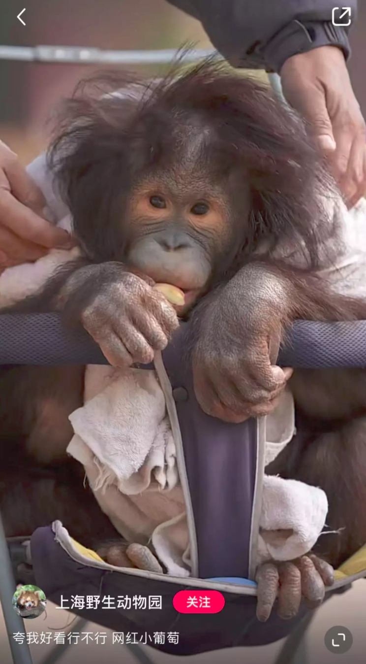 上海野生动物园在疫情期间开设直播。每天早上9点,网友线上蹲守动物朋友们,看“西瓜粉碎机”河马吃一半漏一半,看精灵古怪的狐猴争抢早饭……直播还培养出了一位网红——红毛猩猩“小葡萄”,它用不同于刻板印象的反差萌淑女气质征服了网友。
