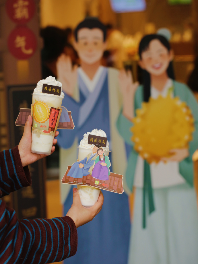 3月17日,奈雪的茶正式官宣,联动武林外传推出霸气榴莲系列。