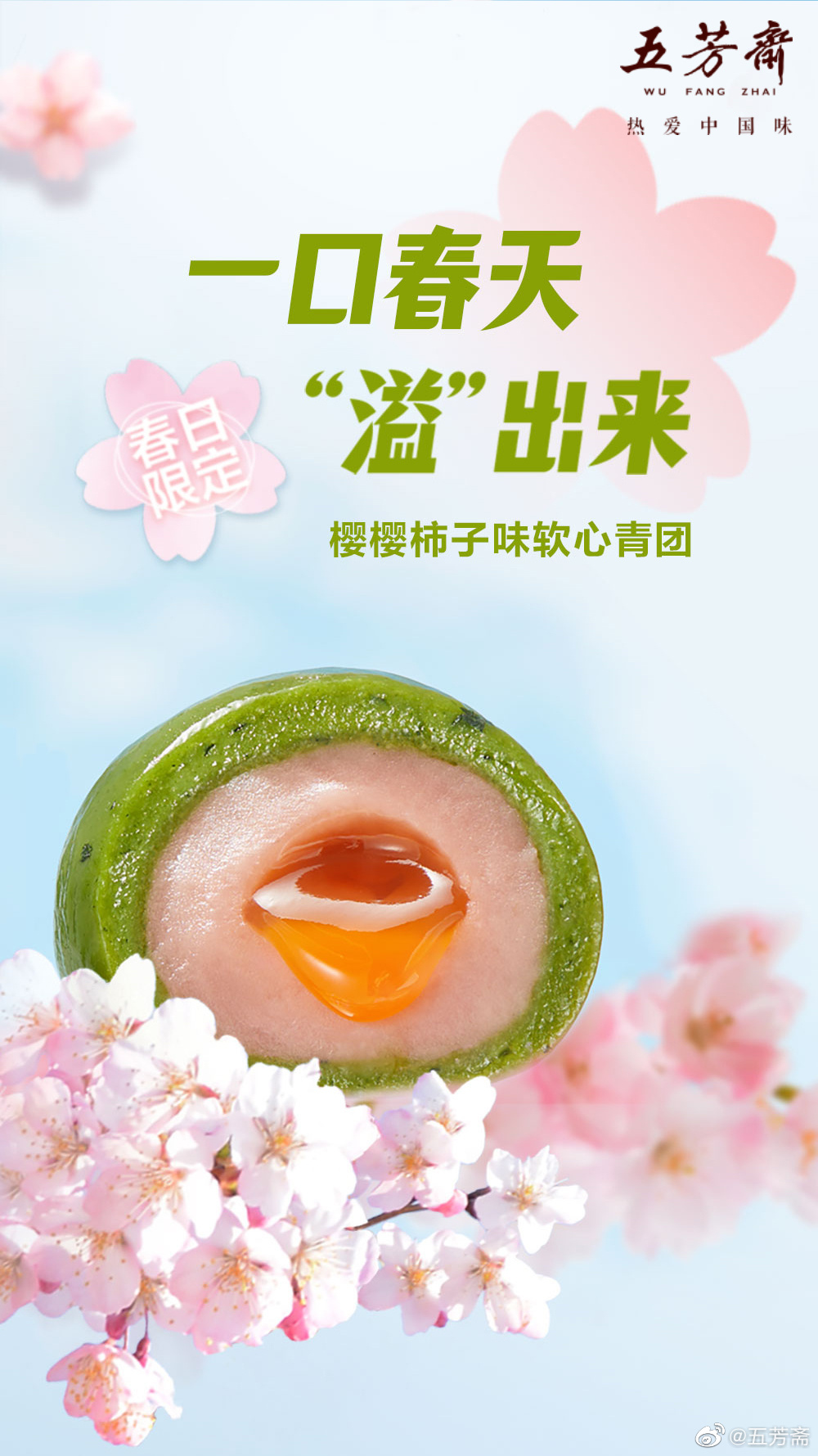 五芳斋推出春季限定新品——樱樱柿子味软心青团,轻松将颜值拿捏。